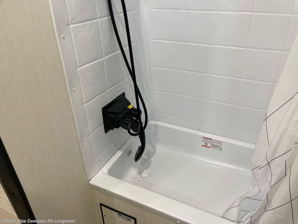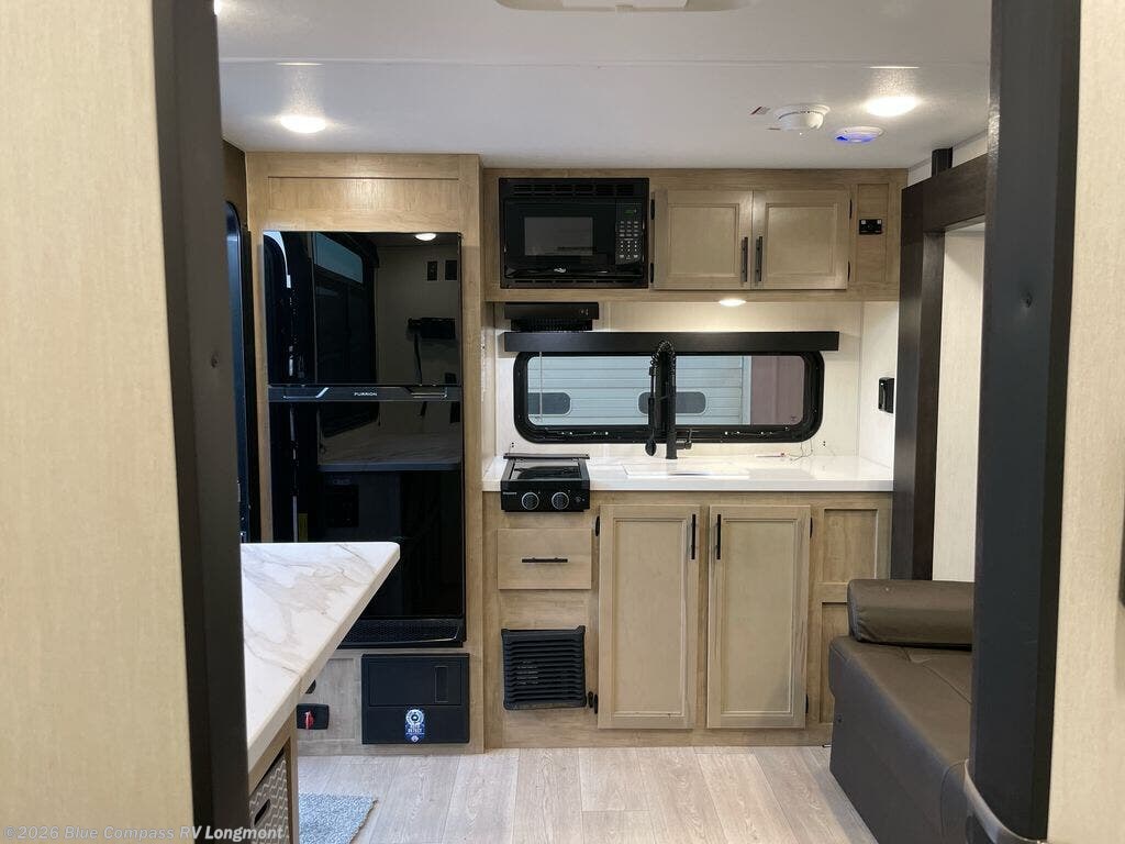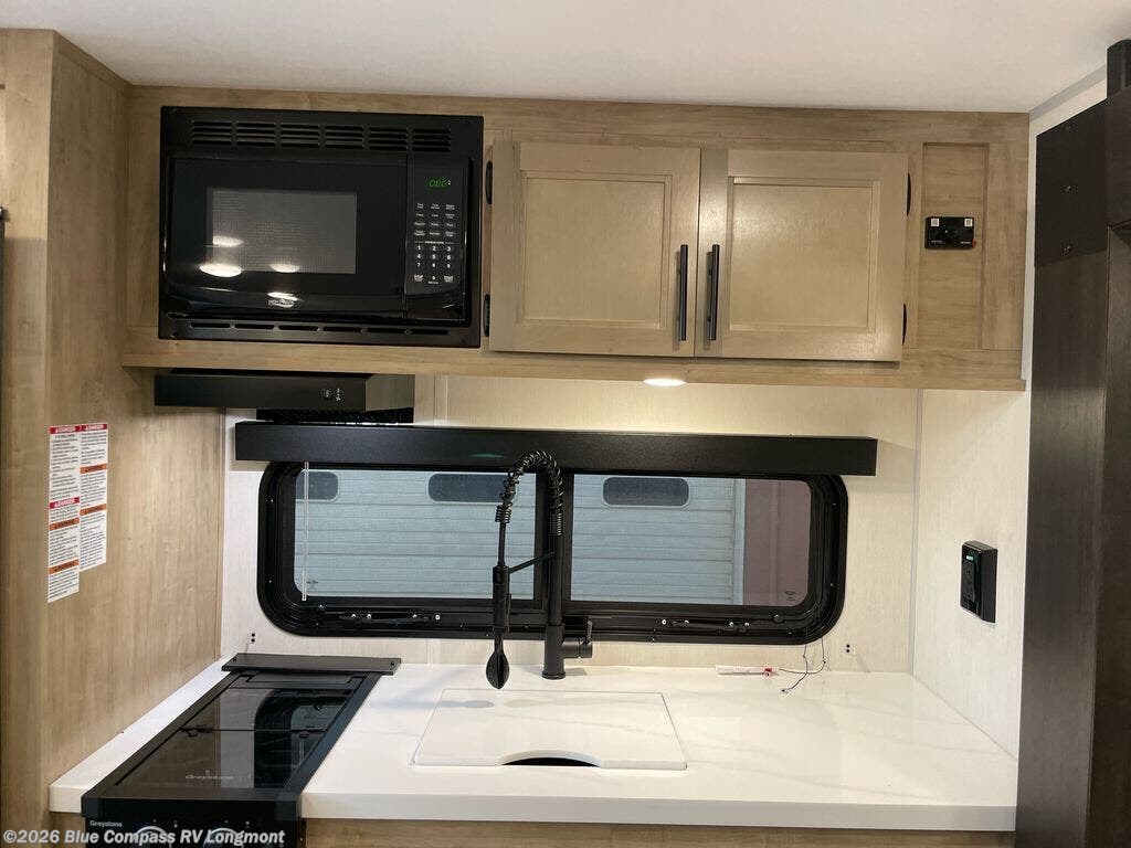 Convenient camping is found with this lightweight travel trailer! Once you arrive at your destination, put out the power awning, then make lunch on the exterior mini kitchen. Inside, you can dine at the bar top with stools, freshen up in the tub/shower, and sleep soundly on the queen bed in the master bedroom. There is also a sofa slide out to provide additional seating, sleeping, and interior space! And you're sure to find plenty of storage spaces both inside and outside, including a rear storage rack!