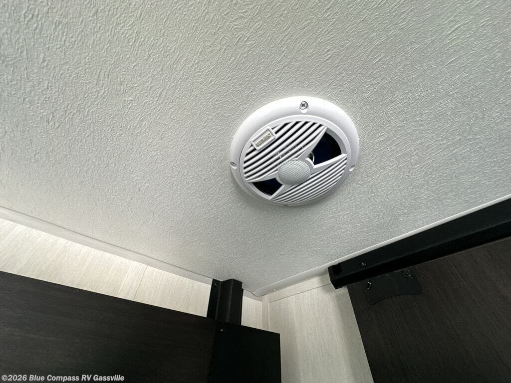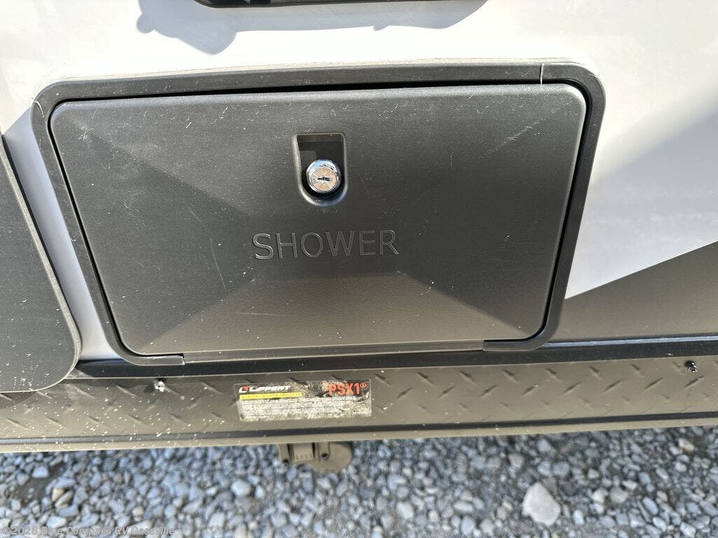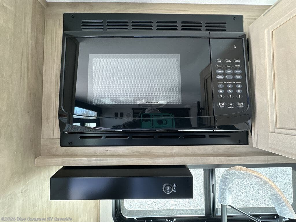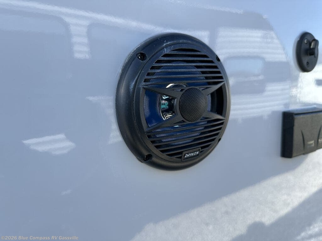 Convenient camping is found with this lightweight travel trailer! Once you arrive at your destination, put out the power awning, then make lunch on the exterior mini kitchen. Inside, you can dine at the bar top with stools, freshen up in the tub/shower, and sleep soundly on the queen bed in the master bedroom. There is also a sofa slide out to provide additional seating, sleeping, and interior space! And you're sure to find plenty of storage spaces both inside and outside, including a rear storage rack!