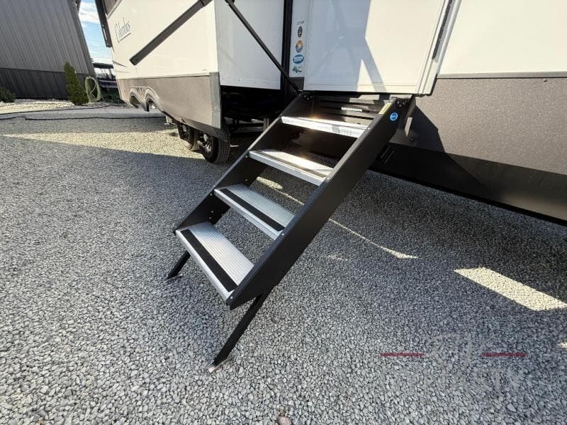 Experience a different camping life with residential furnishings and high-end features in each one of these Forest River Columbus fifth wheels! Durable construction begins with a 101" wide body, an all-welded aluminum frame superstructure, and high-gloss fiberglass vacuum bonded walls and slide out ends with dual Azdel. You will appreciate the Lippert axles, MORryde CRE 3000 suspension system, and 16" wheels with nitrogen-filled tires for a smooth tow from home to campground. Additional exterior features include a tire pressure monitoring system, a heated utility convenience center, an outside sprayer, and slam latch on all the storage doors. Inside, you'll be met with many luxurious amenities, including residential style crown molding throughout, roller day/night shades, upgraded true solid surface countertops in the bath and kitchen, plus solid wood steps.