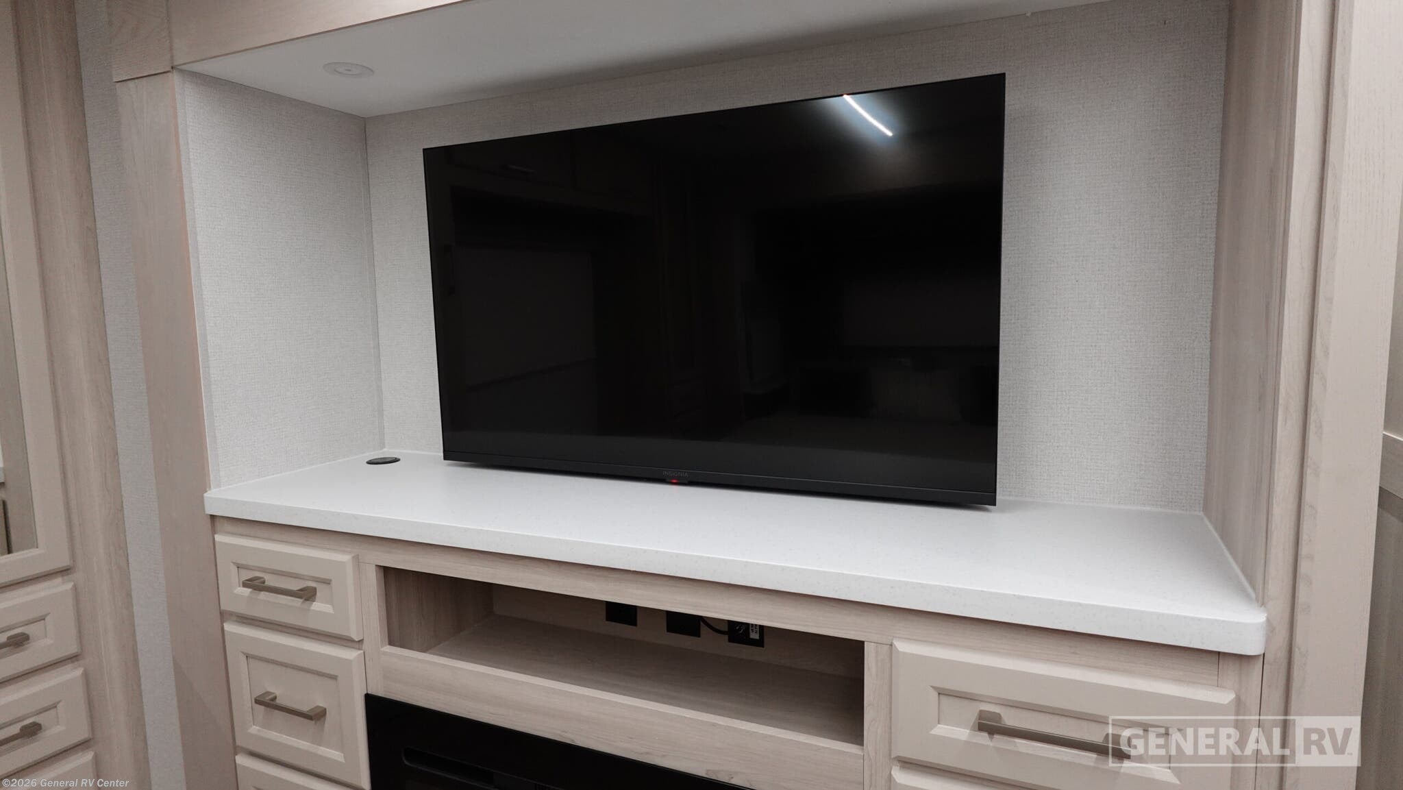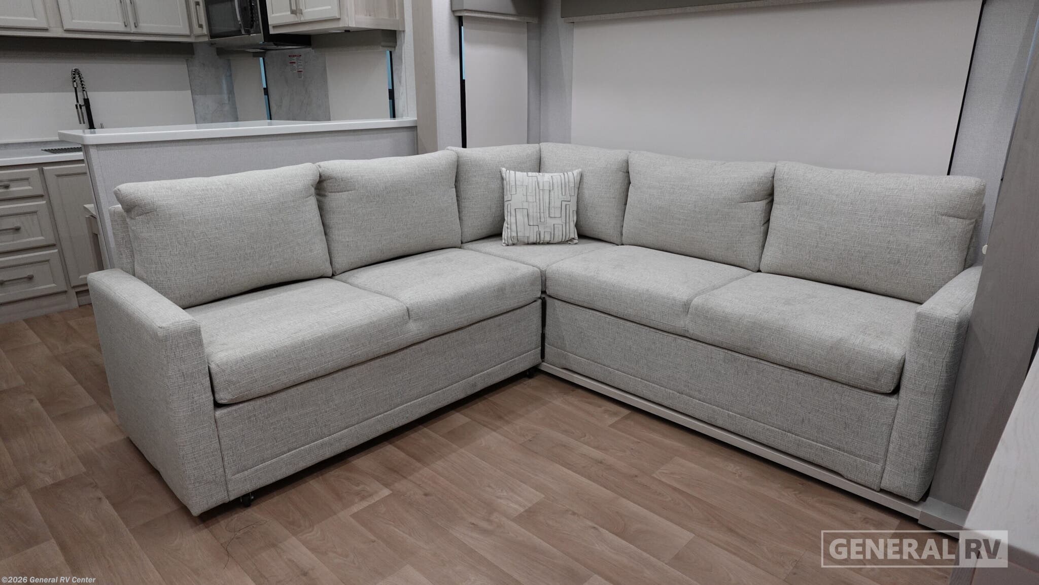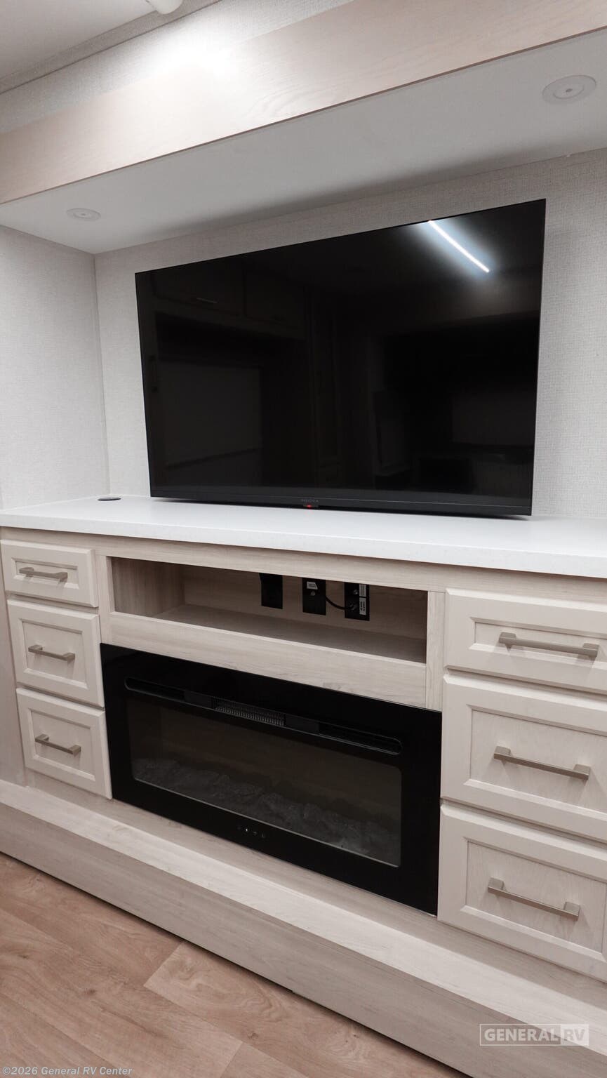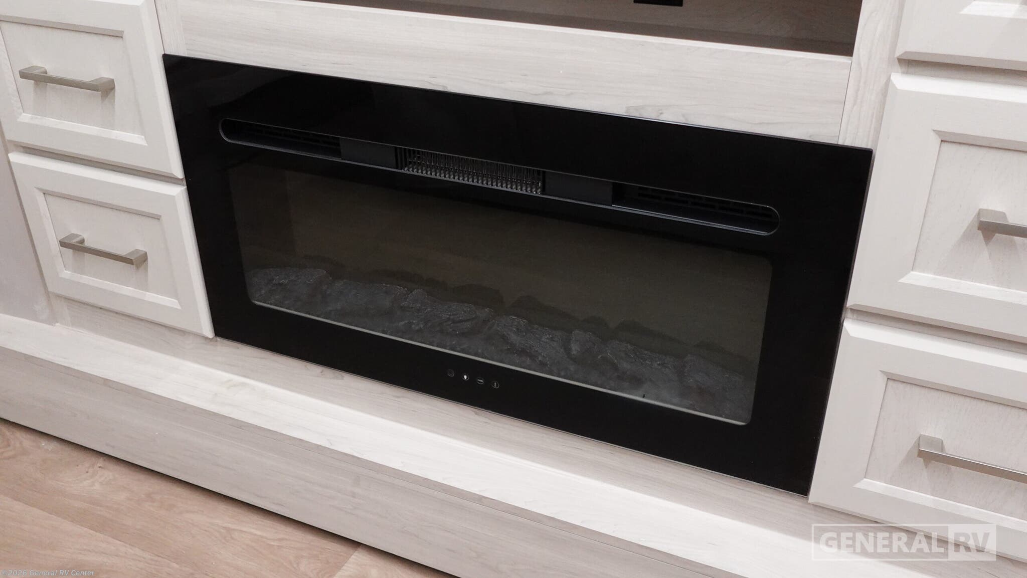 Discover the 2026 Forest River Columbus 379MBL, a luxurious haven on wheels designed for those who seek both adventure and comfort. This stunning fifth wheel stretches an impressive 42 feet, offering a spacious retreat for up to seven travelers. The heart of this RV is its inviting living area, featuring a 92-inch L-lounge and an entertainment center complete with a cozy fireplace, perfect for relaxing evenings. The kitchen is a culinary delight with ample counter space, a large fridge, and a pantry, ensuring you have everything you need to whip up delicious meals on the go. The Columbus 379MBL is thoughtfully designed with family and friends in mind. The mid-bunk room offers a tri-fold sofa and a bunk, providing flexible sleeping arrangements. Above, a loft area adds an extra cozy sleeping spot or a perfect hideaway for kids. The master suite boasts a king-sized bed, surrounded by ample wardrobe space and a second fireplace, creating a serene retreat at the end of the day. With two expansive awnings, you can enjoy the great outdoors in comfort, whether you're savoring your morning coffee or hosting a barbecue. For more details, visit your nearest General RV dealership and step into the adventure that awaits you with the Columbus 379MBL.