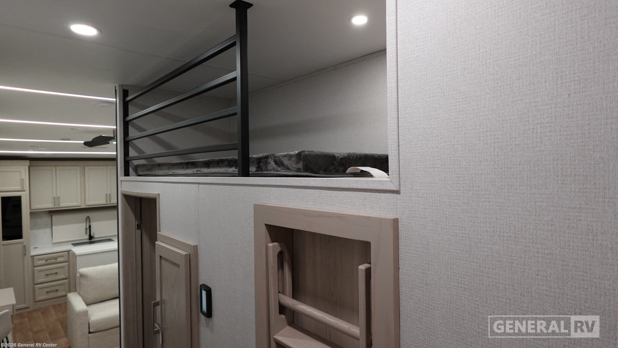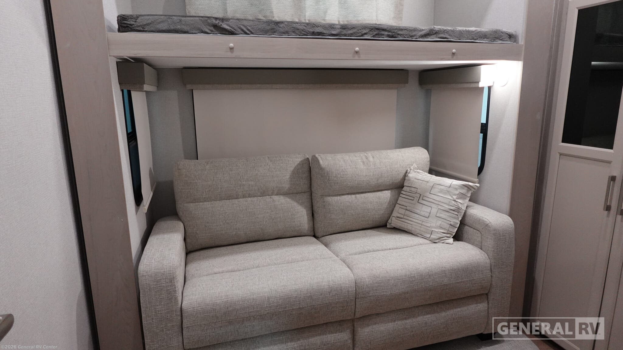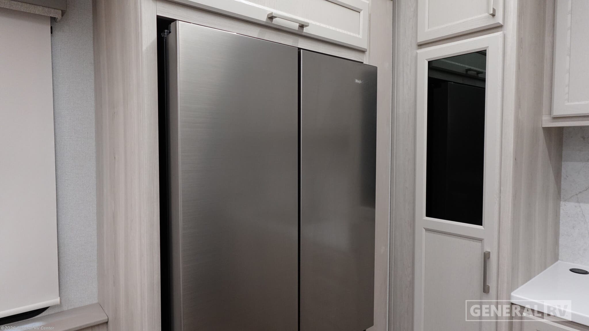 Discover the 2026 Forest River Columbus 379MBL, a luxurious haven on wheels designed for those who seek both adventure and comfort. This stunning fifth wheel stretches an impressive 42 feet, offering a spacious retreat for up to seven travelers. The heart of this RV is its inviting living area, featuring a 92-inch L-lounge and an entertainment center complete with a cozy fireplace, perfect for relaxing evenings. The kitchen is a culinary delight with ample counter space, a large fridge, and a pantry, ensuring you have everything you need to whip up delicious meals on the go. The Columbus 379MBL is thoughtfully designed with family and friends in mind. The mid-bunk room offers a tri-fold sofa and a bunk, providing flexible sleeping arrangements. Above, a loft area adds an extra cozy sleeping spot or a perfect hideaway for kids. The master suite boasts a king-sized bed, surrounded by ample wardrobe space and a second fireplace, creating a serene retreat at the end of the day. With two expansive awnings, you can enjoy the great outdoors in comfort, whether you're savoring your morning coffee or hosting a barbecue. For more details, visit your nearest General RV dealership and step into the adventure that awaits you with the Columbus 379MBL.