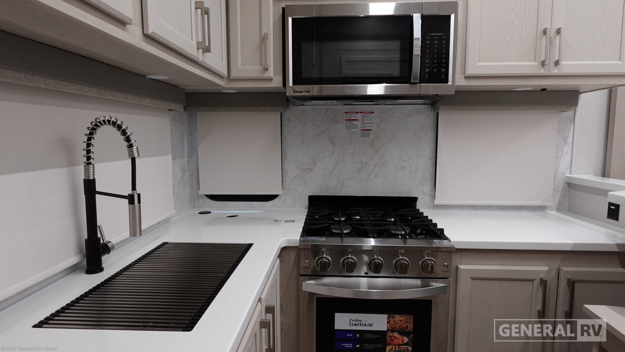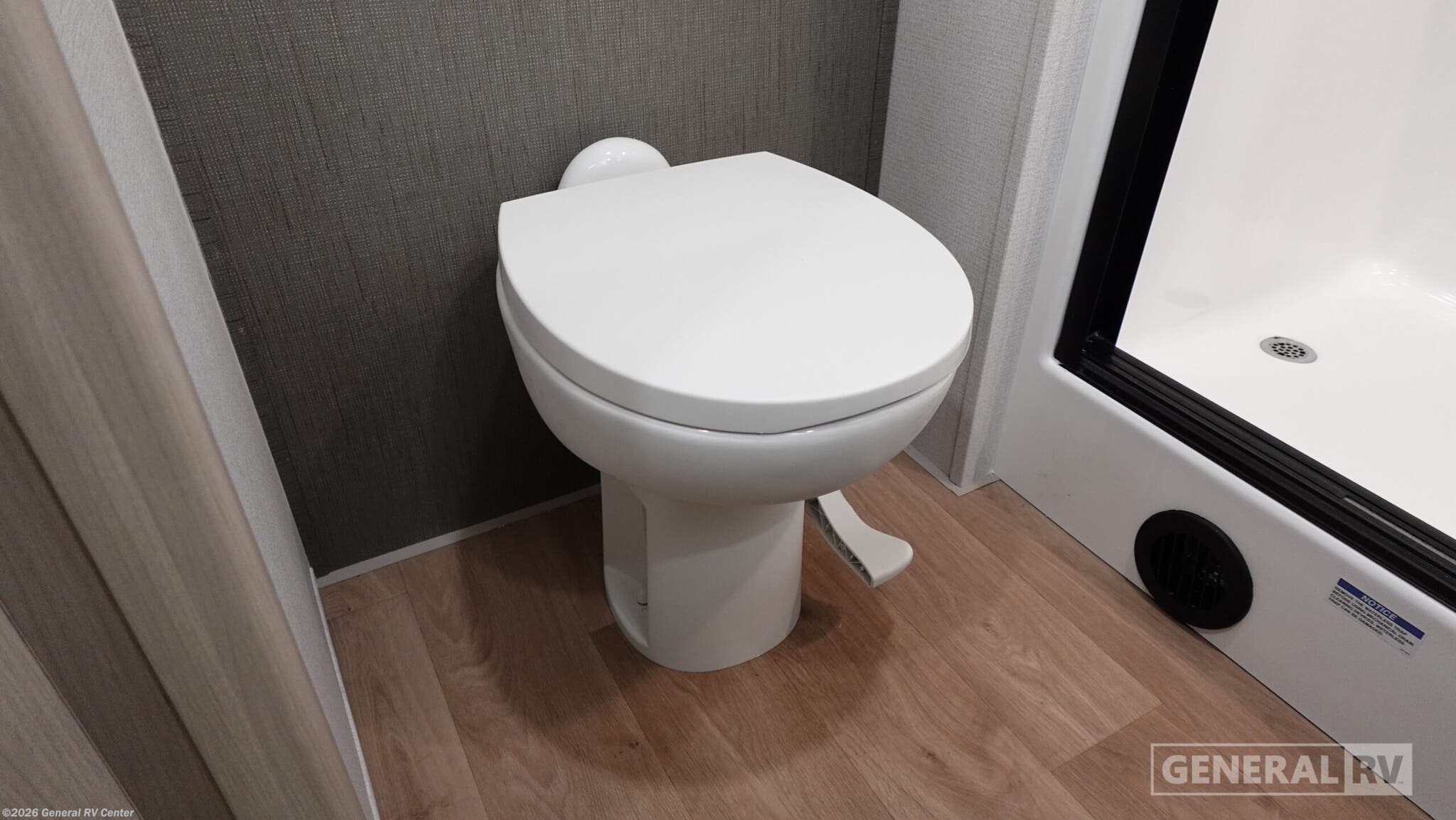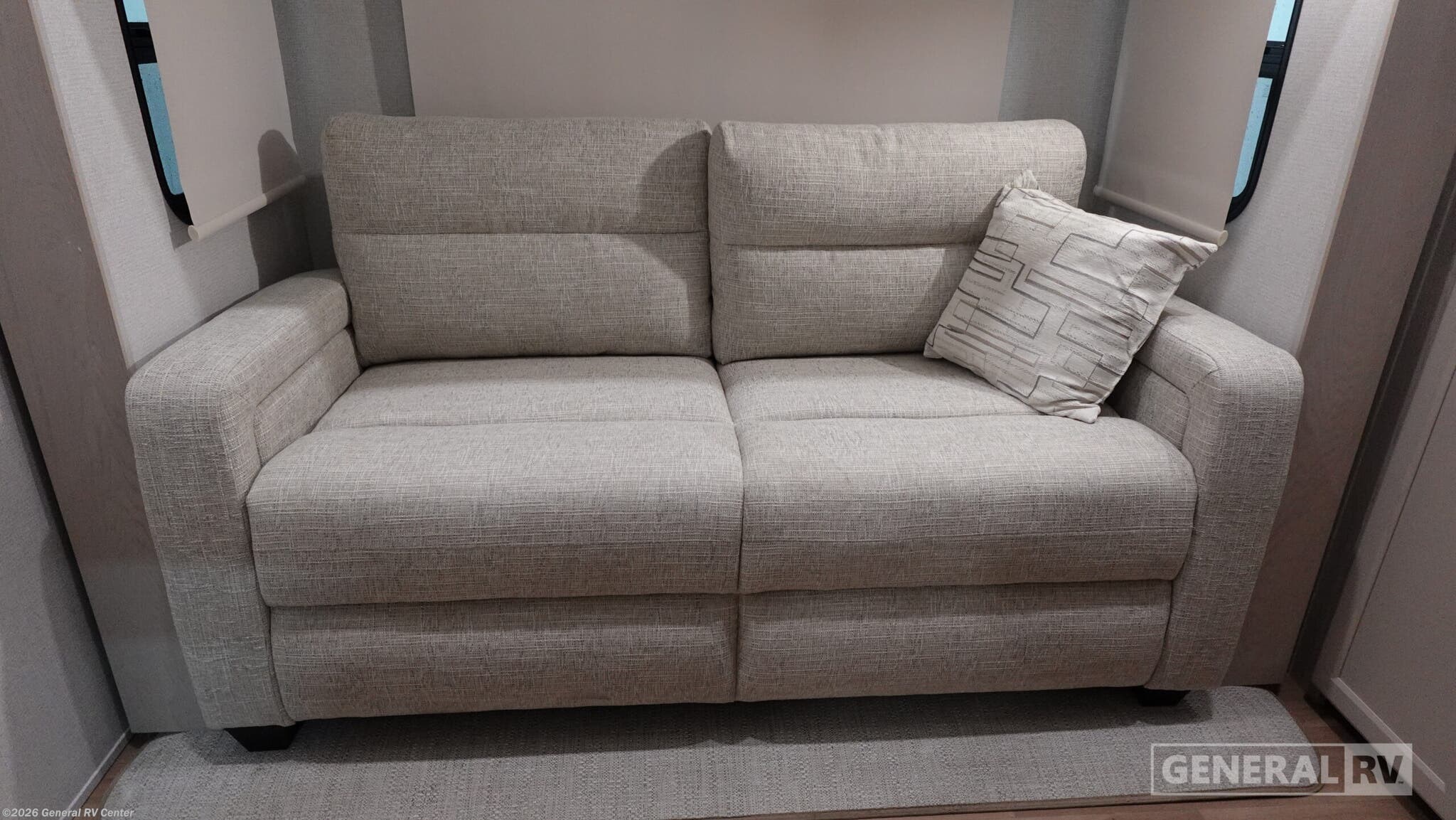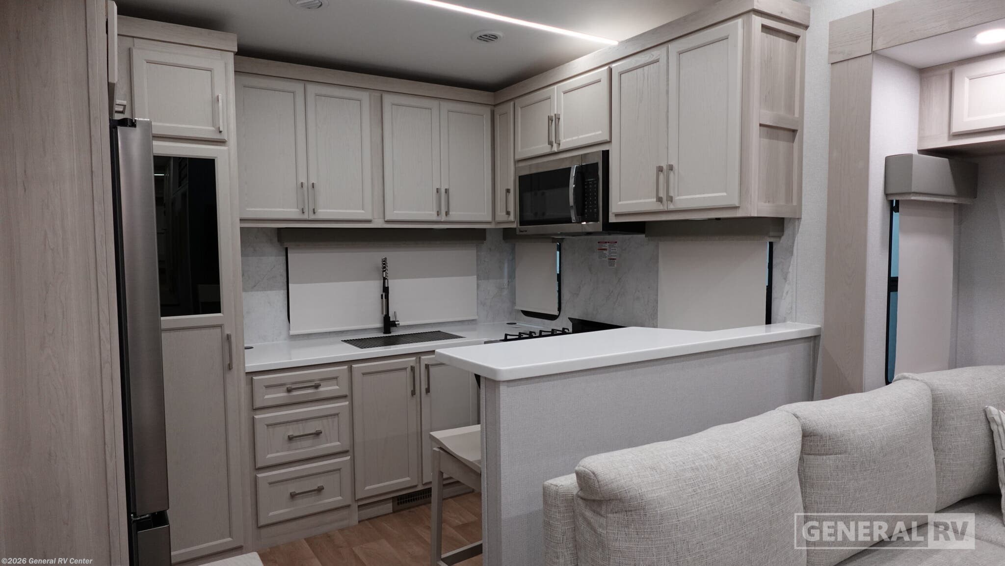Discover the 2026 Forest River Columbus 379MBL, a luxurious haven on wheels designed for those who seek both adventure and comfort. This stunning fifth wheel stretches an impressive 42 feet, offering a spacious retreat for up to seven travelers. The heart of this RV is its inviting living area, featuring a 92-inch L-lounge and an entertainment center complete with a cozy fireplace, perfect for relaxing evenings. The kitchen is a culinary delight with ample counter space, a large fridge, and a pantry, ensuring you have everything you need to whip up delicious meals on the go. The Columbus 379MBL is thoughtfully designed with family and friends in mind. The mid-bunk room offers a tri-fold sofa and a bunk, providing flexible sleeping arrangements. Above, a loft area adds an extra cozy sleeping spot or a perfect hideaway for kids. The master suite boasts a king-sized bed, surrounded by ample wardrobe space and a second fireplace, creating a serene retreat at the end of the day. With two expansive awnings, you can enjoy the great outdoors in comfort, whether you're savoring your morning coffee or hosting a barbecue. For more details, visit your nearest General RV dealership and step into the adventure that awaits you with the Columbus 379MBL.