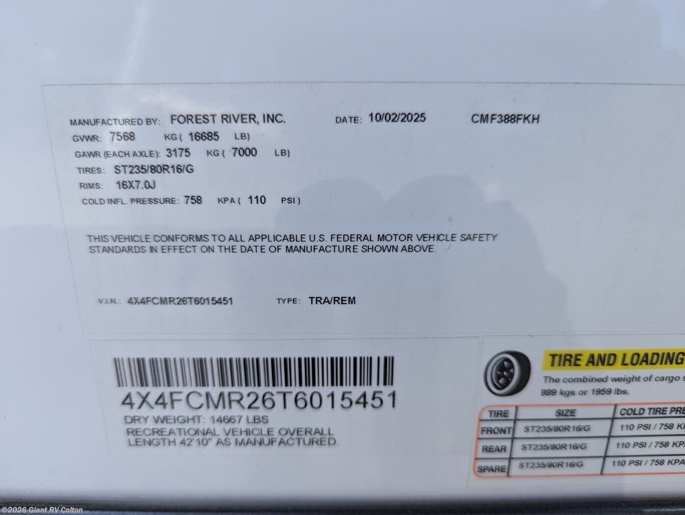 - VIN4X4FCMR26T6015451