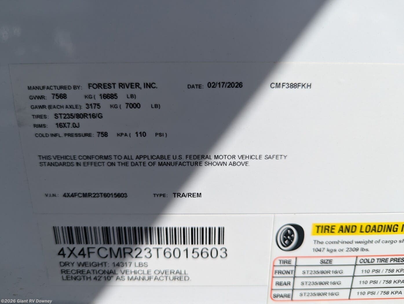 - VIN4X4FCMR23T6015603