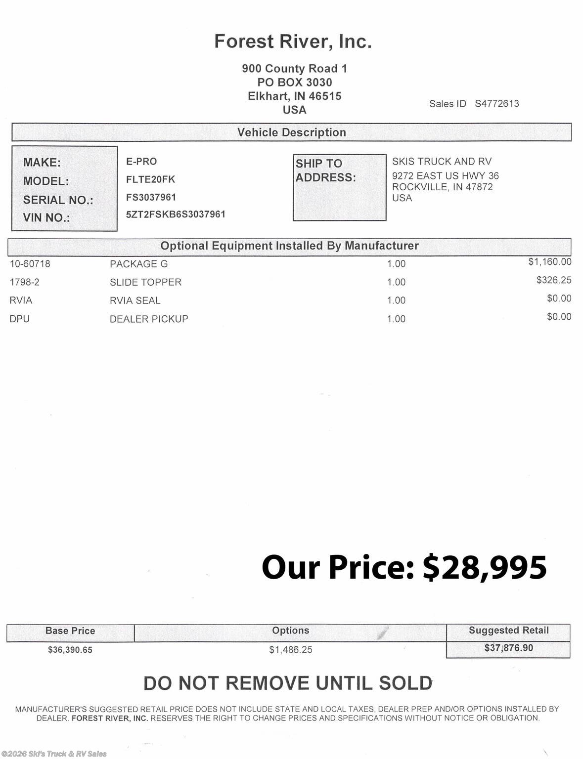 Request More Info on this 2026 Forest River E-Pro E20FK Offered for sale by Ski's Truck & RV Sales