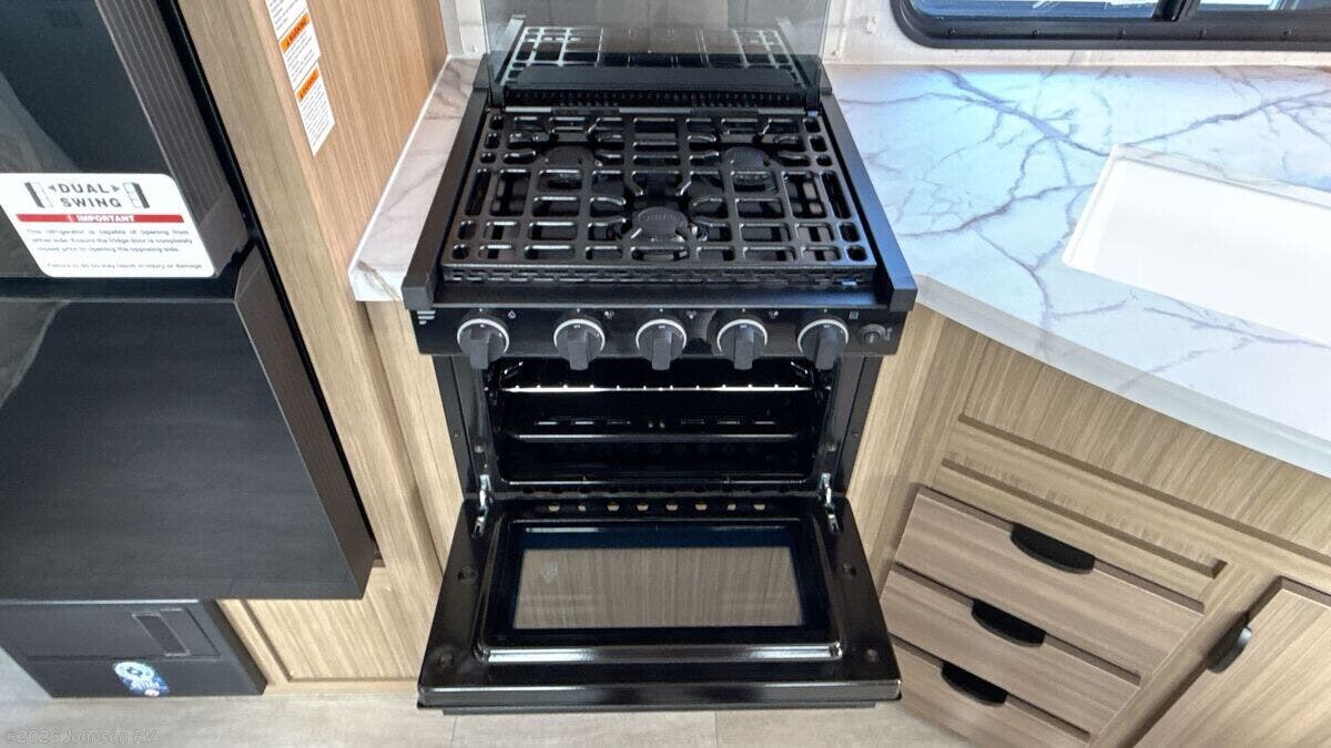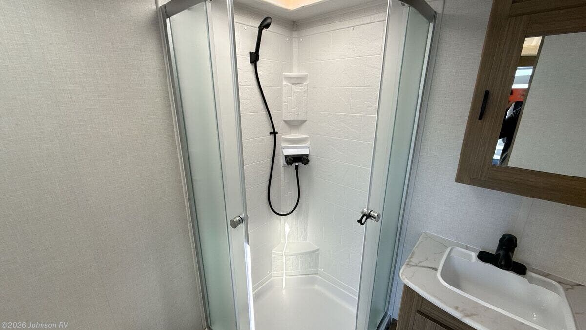 The 2026 Forest River Evo EVO Lite 2160RBX is a new travel trailer that combines modern amenities with practical design, making it an ideal choice for those seeking adventure on the road. This RV is part of the Evo Lite series, known for its lightweight construction and ease of towing, making it suitable for a variety of vehicles. The exterior of the Evo EVO Lite is designed with convenience and durability in mind. It features E-Z Lube Axles and self-adjusting brakes, ensuring a smooth and safe towing experience. The radius entry door and XL grab handle provide easy access, while the power awning with adjustable legs offers a comfortable outdoor space. The trailer is equipped with an external LED strip lighting, enhancing visibility and ambiance during nighttime activities. Inside, the Evo EVO Lite is packed with features that enhance comfort and functionality. The central switch command center allows for easy control of the RV's systems. The 13.5 ducted A/C with Quick Cool ensures a comfortable climate, while the electric fireplace with crystals adds a touch of luxury and warmth. The modern cloth roller shades with autostop in the living room and bedroom provide privacy and light control. The kitchen is equipped with a range with oven, a solid surface countertop with an undermount sink, and a 10 cubic foot 12V refrigerator, making meal preparation a breeze. The flip-up countertop extension offers additional workspace when needed. The upgraded appliance package ensures reliability and efficiency. The bathroom features a foot flush toilet, a skylight over the tub/shower, and a tub/shower surround, providing a comfortable and convenient space for personal care. The black tank flush and enclosed holding tanks with 12V heat strips ensure easy maintenance and operation in various weather conditions. For entertainment and connectivity, the Evo EVO Lite includes a Bluetooth stereo and a USB port package, allowing you to stay connected and enjoy your favorite music or podcasts. The extra-large panoramic window in the main slide offers stunning views and natural light, enhancing the overall living experience. Additional features include: - Luxury and Paramount Packages - Outside speakers for outdoor entertainment - Spare tire carrier for added security - Detachable power cord for easy setup - Outside shower for rinsing off after outdoor activities - Battery disconnect for energy management - Magnetic latches on baggage doors for secure storage - On-demand water heater for instant hot water - Versa Lounge for versatile seating arrangements The Evo EVO Lite 2160RBX is also equipped with a 200W expandable roof mount solar panel and a 30-amp charge controller, part of the Green Package, which includes solar prep and LED interior lighting, promoting energy efficiency and sustainability. Overall, the 2026 Forest River Evo EVO Lite 2160RBX is a well-equipped travel trailer that offers a blend of comfort, convenience, and modern technology, making it a perfect companion for your road adventures. ???