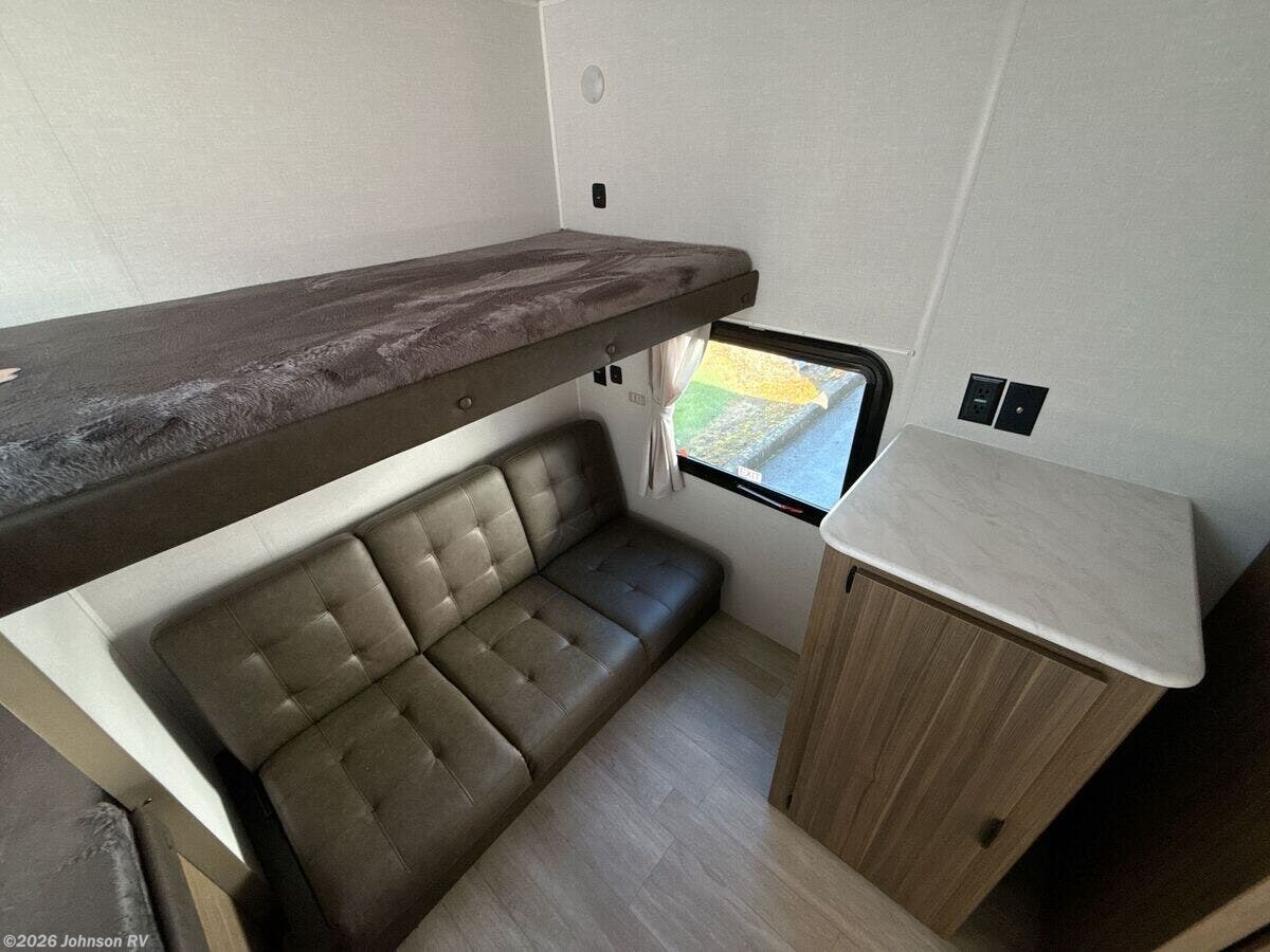 The 2026 Forest River Evo EVO Lite 2750QBX is a state-of-the-art travel trailer designed to offer a luxurious and comfortable experience for adventurers and travelers. This RV is packed with a variety of features and amenities that cater to both convenience and style, making it an ideal choice for those who love to explore the great outdoors without sacrificing the comforts of home. The exterior of the Evo EVO Lite is designed with practicality and durability in mind. It features E-Z Lube Axles and self-adjusting brakes, ensuring a smooth and safe journey. The radius entry door, along with an XL grab handle, provides easy access to the interior. For entertainment and relaxation, there are two outside speakers, perfect for enjoying music or podcasts while lounging outside. The power awning with adjustable legs and external LED strip lighting adds to the ambiance, making outdoor gatherings more enjoyable. Inside, the Evo EVO Lite is equipped with a range of luxurious features. The central switch command center allows for easy control of various functions, while the 13.5 ducted A/C with Quick Cool ensures a comfortable climate. The interior is adorned with modern cloth roller shades with autostop in the living room and bedroom, offering privacy and style. The upgraded hidden hinges and solid surface countertop with an undermount sink add a touch of elegance to the kitchen area. The Evo Luxury Package enhances the RV with several additional features: - Range with oven instead of a cooktop - Flip-up countertop extension - Foot flush toilet - Skylight over tub/shower - Coat rack - Cable TV hookup - LP quick connect - Black tank flush - Radial tires with spare tire carrier - Detachable power cord - Outside shower - 2nd bunk window - Tub/shower surround - Battery disconnect - Enclosed holding tanks with 12V heat strips The Evo Paramount Package further elevates the experience with: - 200W expandable roof mount solar panel - 30-amp charge controller - 10 cubic foot 12V refrigerator - Extra large panoramic window in main slide - Power tongue jack - Fold-down entry step at the main entry - Friction hinge entry door with magnetic latches on baggage doors - Green package with solar prep and LED interior lighting - On-demand water heater - Versa lounge - USB port package - Bluetooth stereo - Upgraded appliance package - Electric fireplace with crystals The Forest River Evo EVO Lite 2750QBX is a travel trailer that combines modern technology with comfort and style, making it a perfect companion for those who seek adventure without compromising on luxury. Whether you're planning a weekend getaway or an extended road trip, this RV is equipped to meet all your needs and more. ??