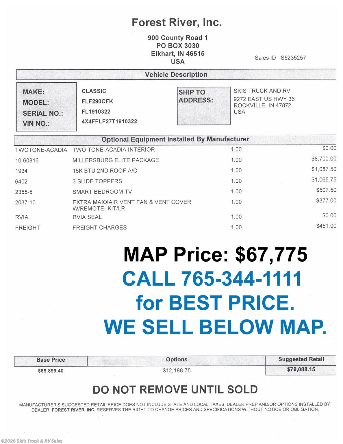 - Price $67,775.00
