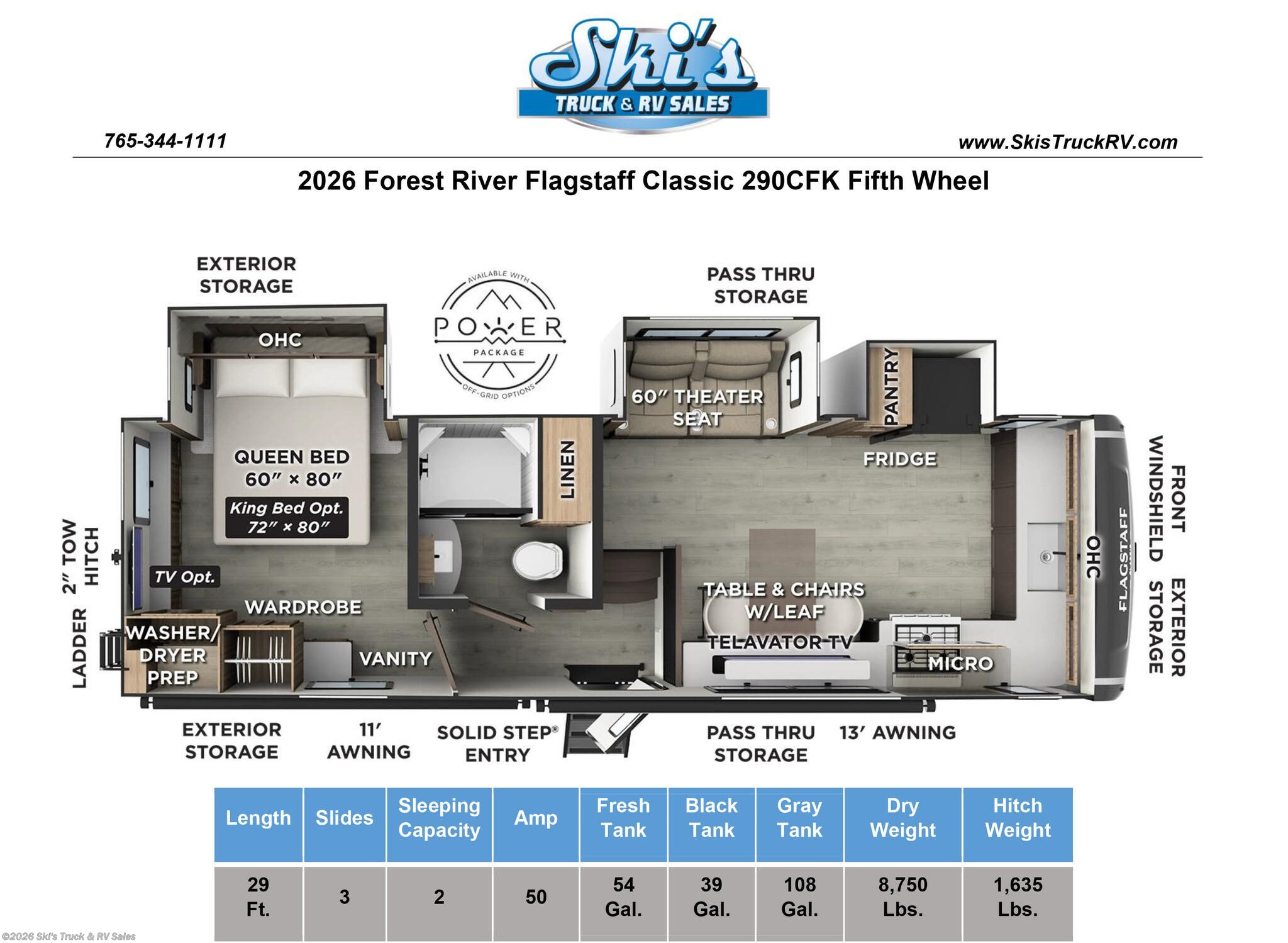 Request More Info on this 2026 Forest River Flagstaff Classic 290CFK Offered for sale by Ski's Truck & RV Sales