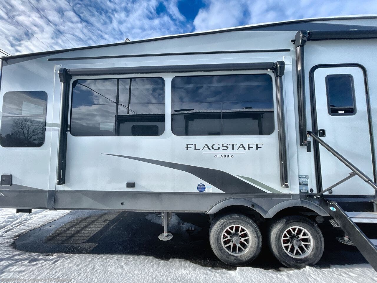 Each one of these Forest River Flagstaff Classic fifth wheels or travel trailers will be your home on wheels! Their quality craftsmanship and attention to detail shines through the enclosed underbelly, the fully laminated walkable roof, and six-sided full-aluminum frame. Towing your unit will be easy with the Goodyear Endurance tires plus RoadTech tire pressure monitoring. Additional exterior features include a 200W solar panel, slam baggage doors, a Key-Alike lock system, and double 30 lb. LP tanks to name a few conveniences. Head inside to find a residential style gas range, solid surface kitchen and bath countertops, soft close hidden cabinet hinges, and more comforts!
