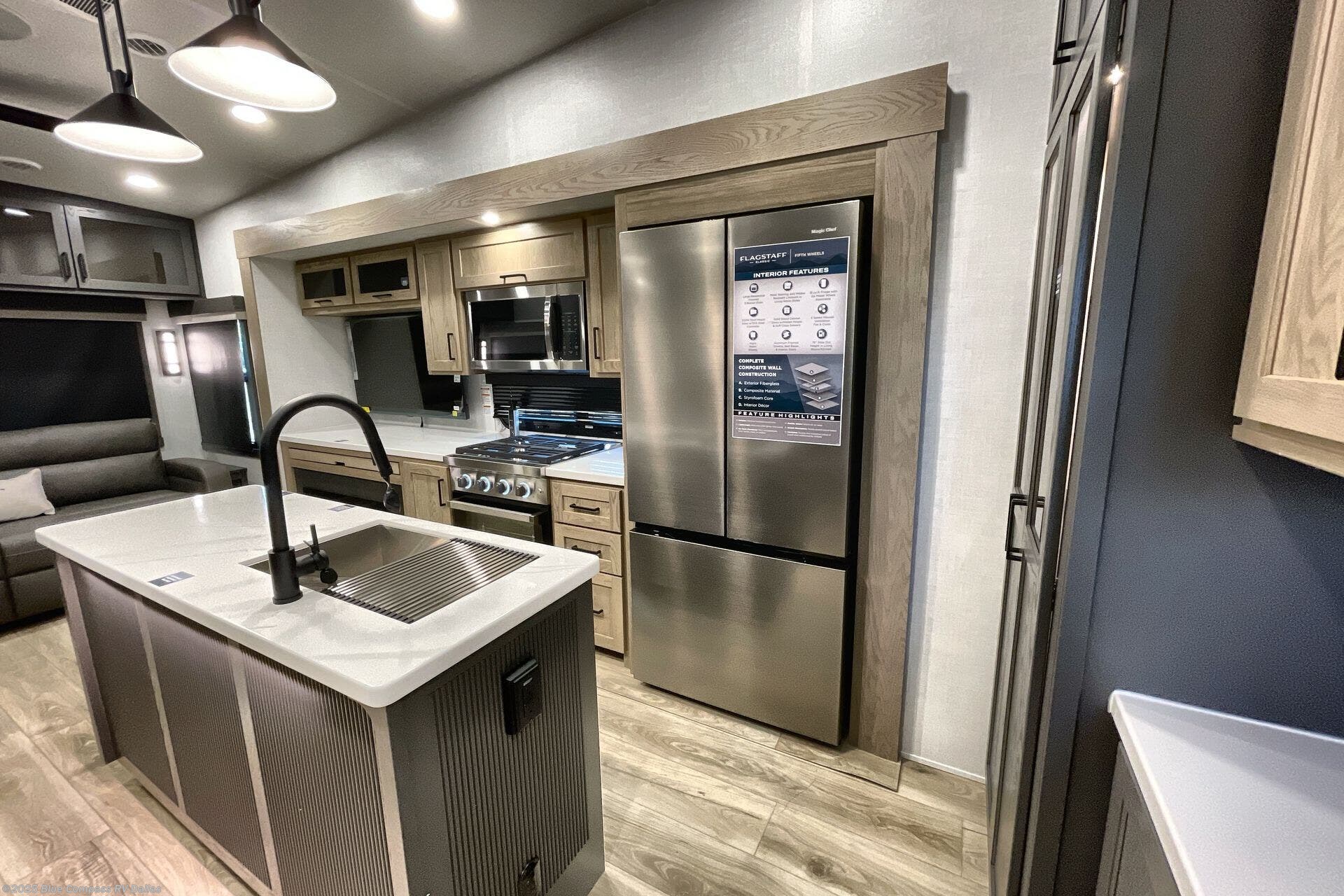 Each one of these Forest River Flagstaff Classic fifth wheels or travel trailers will be your home on wheels! Their quality craftsmanship and attention to detail shines through the enclosed underbelly, the fully laminated walkable roof, and six-sided full-aluminum frame. Towing your unit will be easy with the Goodyear Endurance tires plus RoadTech tire pressure monitoring. Additional exterior features include a 200W solar panel, slam baggage doors, a Key-Alike lock system, and double 30 lb. LP tanks to name a few conveniences. Head inside to find a residential style gas range, solid surface kitchen and bath countertops, soft close hidden cabinet hinges, and more comforts!