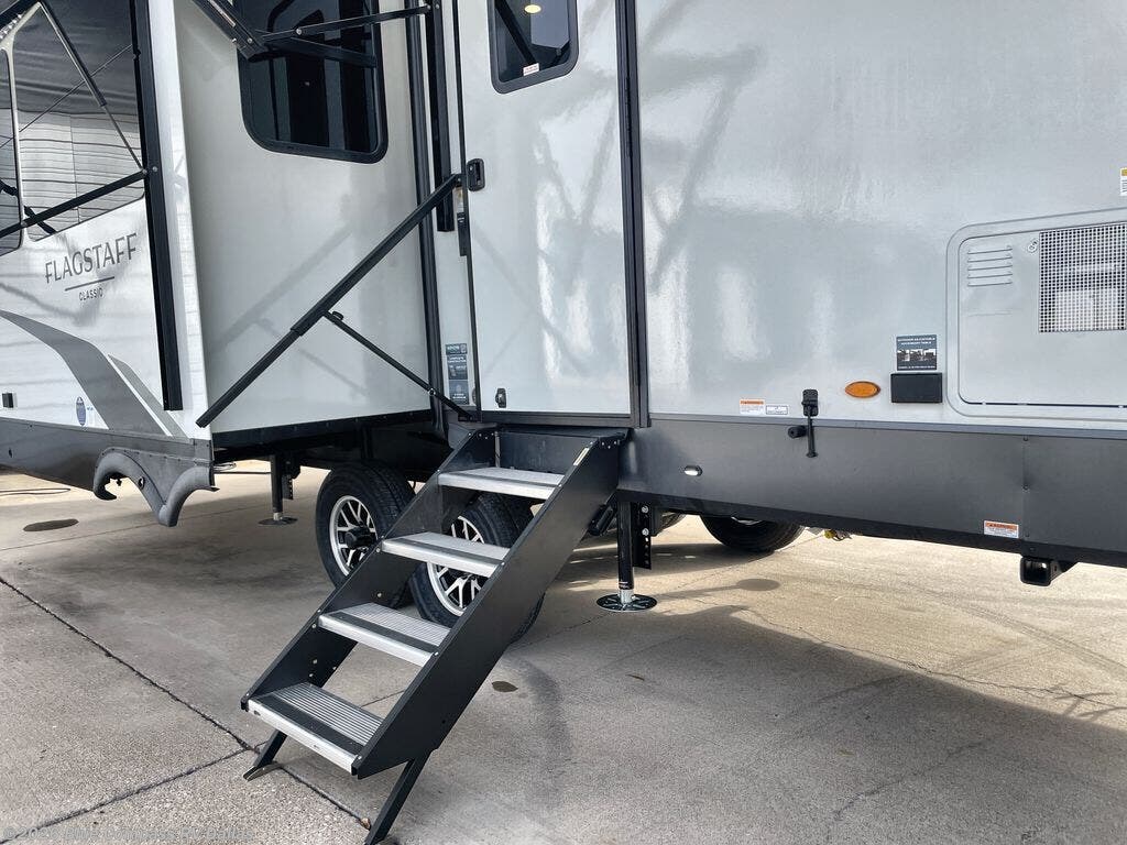 Each one of these Forest River Flagstaff Classic fifth wheels or travel trailers will be your home on wheels! Their quality craftsmanship and attention to detail shines through the enclosed underbelly, the fully laminated walkable roof, and six-sided full-aluminum frame. Towing your unit will be easy with the Goodyear Endurance tires plus RoadTech tire pressure monitoring. Additional exterior features include a 200W solar panel, slam baggage doors, a Key-Alike lock system, and double 30 lb. LP tanks to name a few conveniences. Head inside to find a residential style gas range, solid surface kitchen and bath countertops, soft close hidden cabinet hinges, and more comforts!