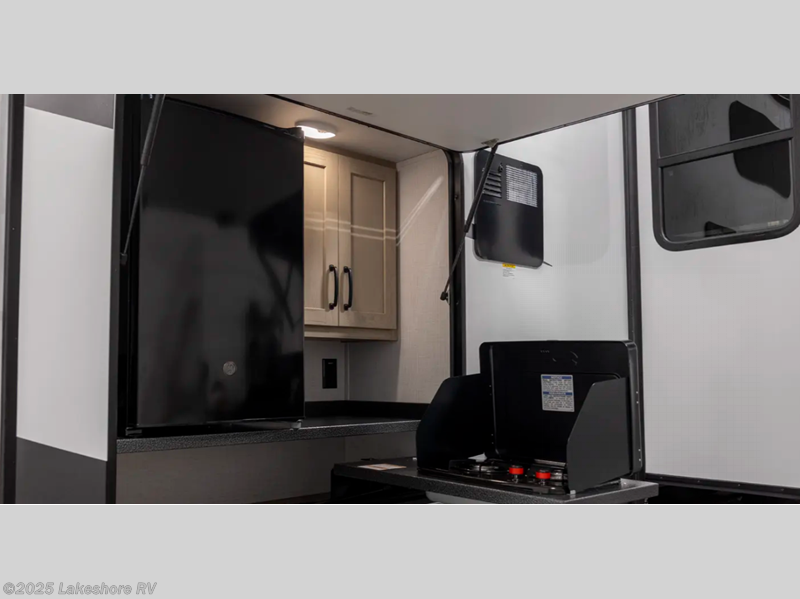 The whole family will love camping in this travel trailer! The kids have their own privacy within the rear bunkhouse that features a 42" x 72" upper bunk with a TV option below it along the curbside, and a flip-up bunk with a 68" pull-out sofa below it along the roadside. After you have prepared a delicious home-cooked meal with the three-burner cooktop and kitchen island, you can head to the 44" x 81" U-shaped dinette where everyone can gather around. You could even prepare dinner at the outside kitchen, set up a table and chairs, and eat underneath the 11' power awning. The 60" hide-a-bed sofa is the perfect place to sit while enjoying the fireplace or watching your favorite movie on the LED TV. A dual-entry bathroom makes it easy for everyone to access especially those staying in the front private bedroom!