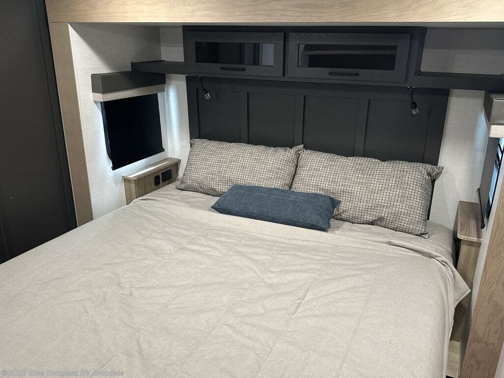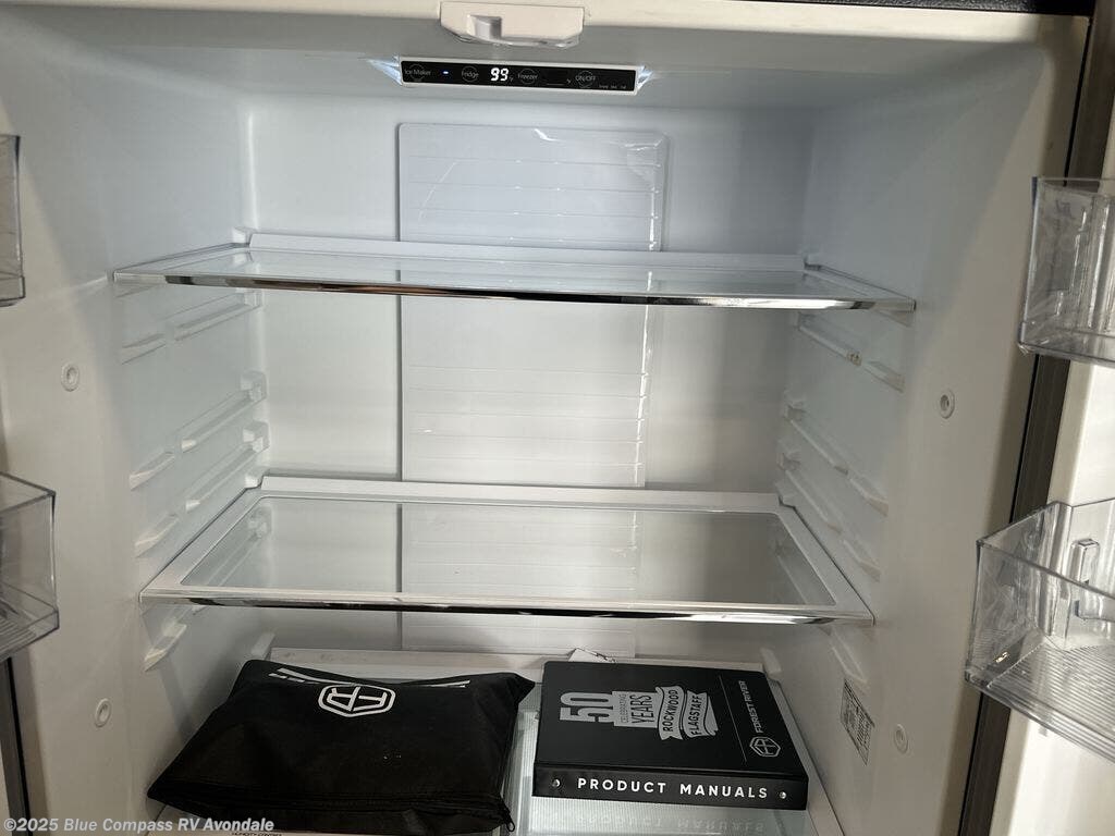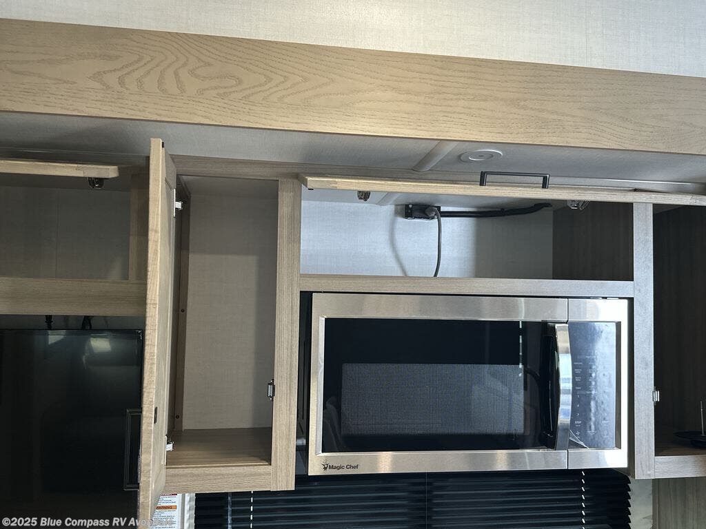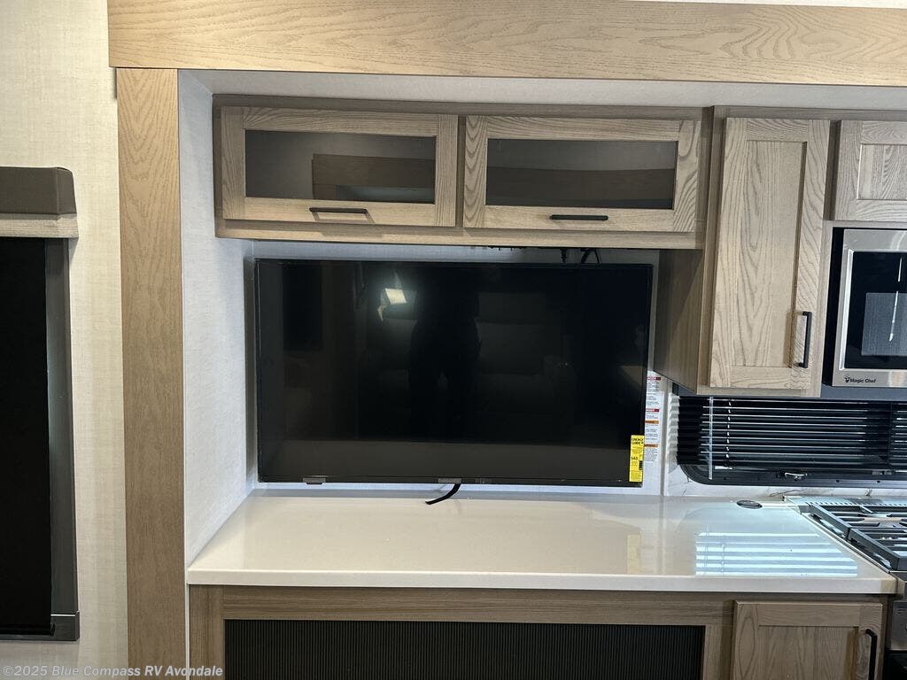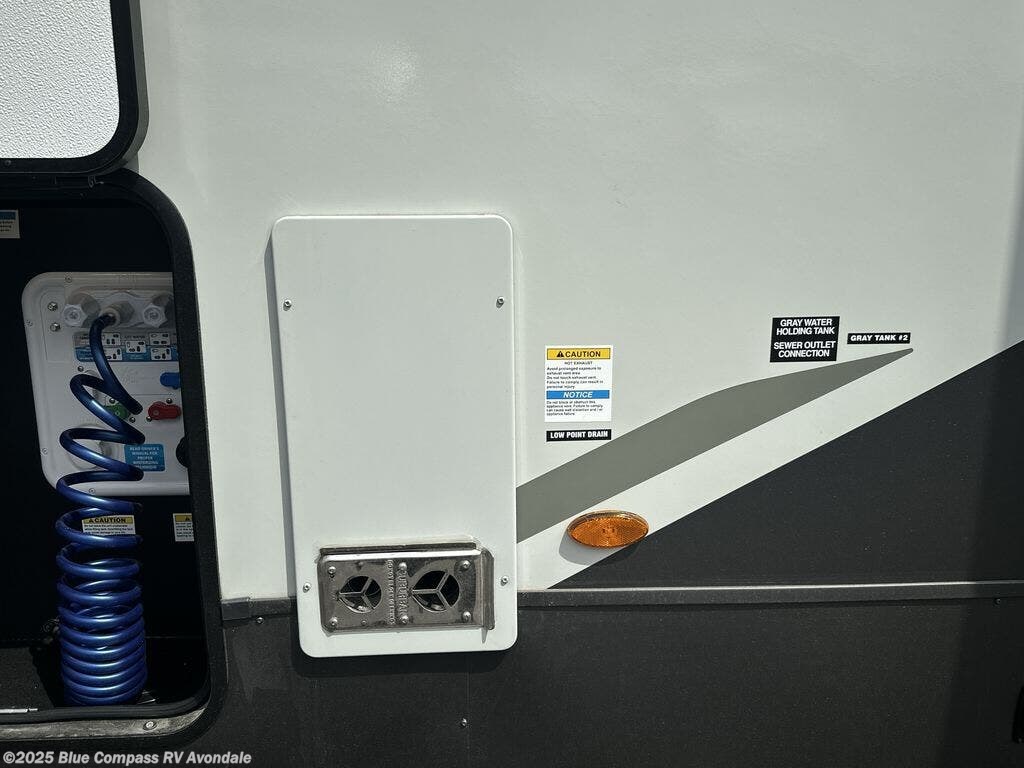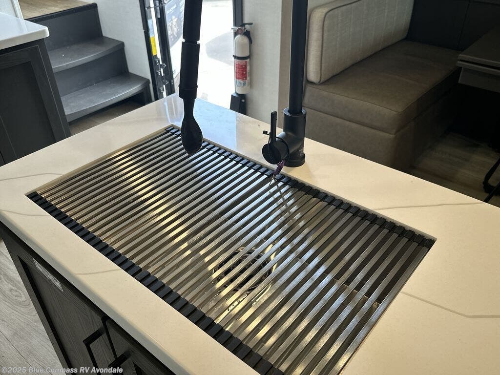 Get ready to enjoy the outdoors while inside with the large windows in both the rear and the door side slide of this fifth wheel. The spacious main living area offers dual opposing slides giving you a great place to invite other RVers over to visit, eat, and even play cards. There is seating for nine from the booth dinette, the theater seats, and the rear hide-a-bed sofa. The cook will have a 12V refrigerator to store lots of drinks and cold food, plus a pantry, and the center island offers extra counter space plus seating. After everyone has left, retire to the front bedroom with a king bed slide, dresser, wardrobe, plus washer and dryer prep if you plan to go full-time!