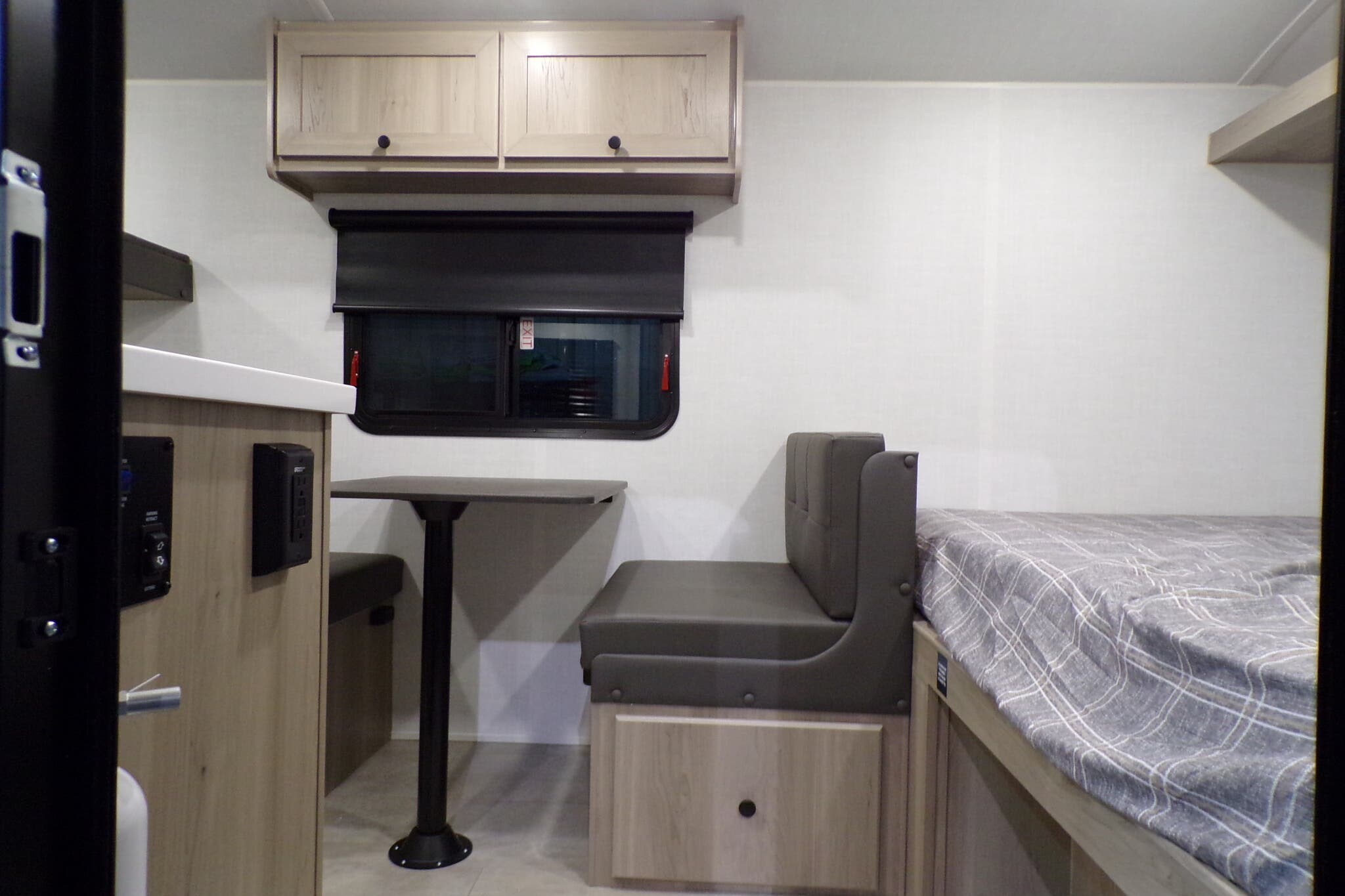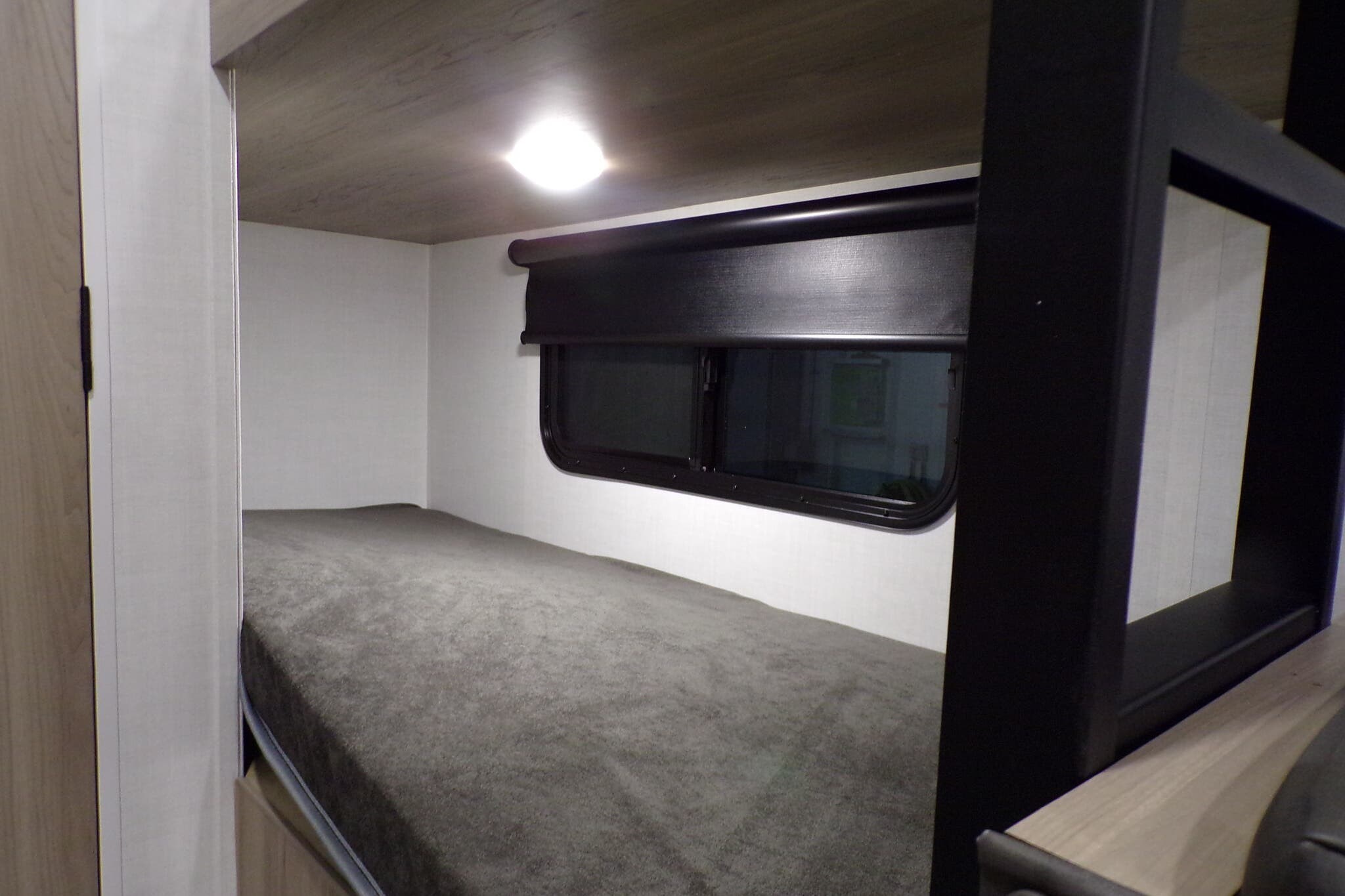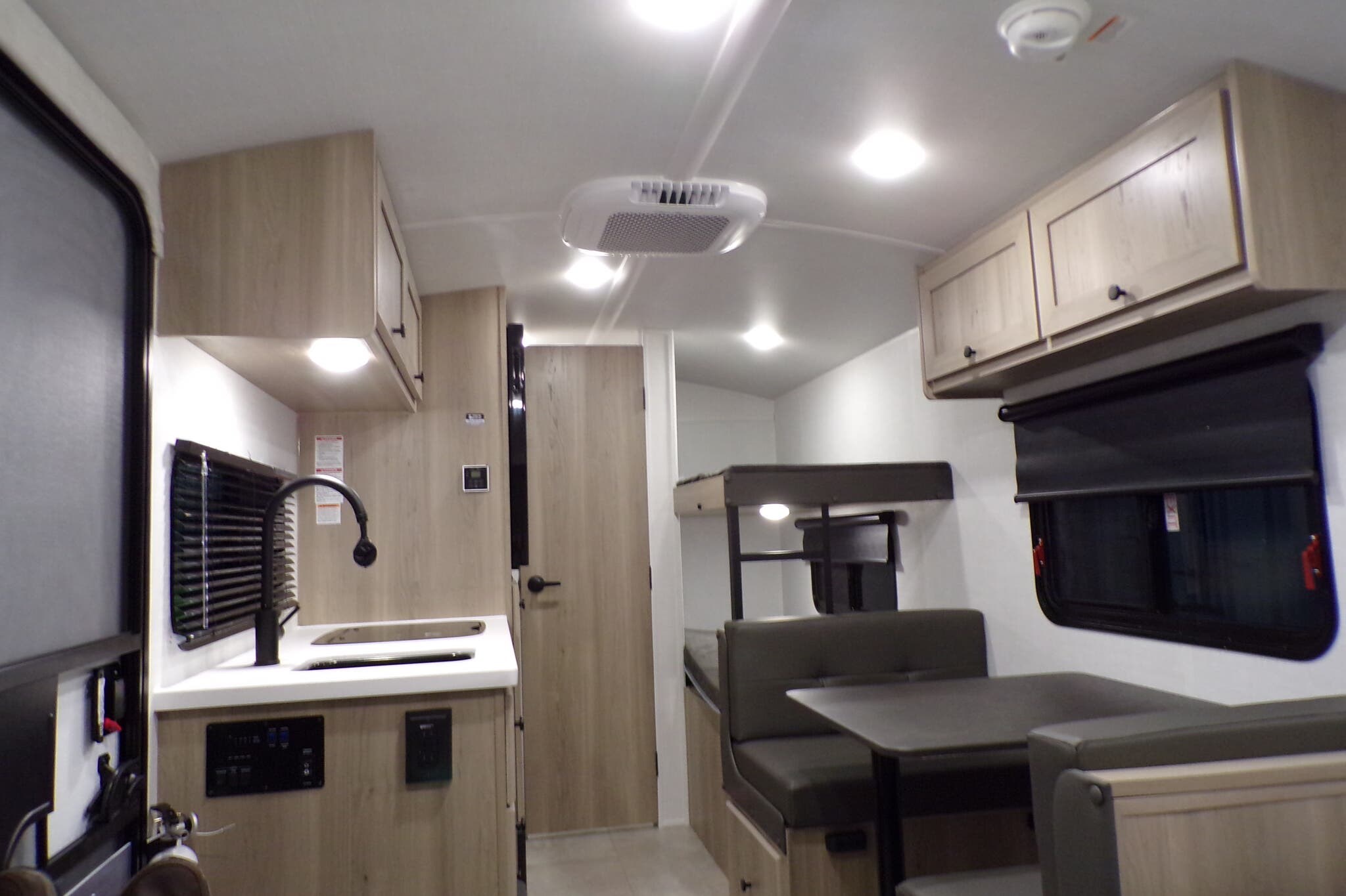 Booth Dinette, Bunk Beds, Dinette Bed, Kitchen Sink, Overhead Cabinetry, Roof Vents, Shower, Toilet