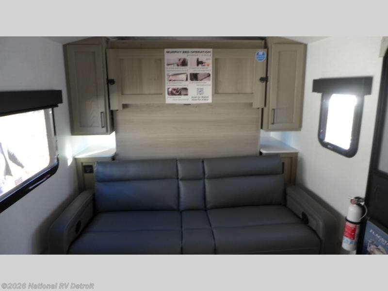 Whether you enjoy staying at the campground for a weekend or longer and/or you enjoy off-grid camping, this 20' 2" long trailer gives you lots of interior space and versatility to enjoy each and every trip. From the Murphy bed/sofa combo up front offering sleeping space and seating depending on which you prefer at the time, to the full rear bathroom which also offers overhead storage, you will have everything you need. And the kitchen cooktop, microwave and 12V refrigerator allow you to make meals and store leftovers. Two can dine at the booth dinette or you can eat outdoors under the 14' power awning.