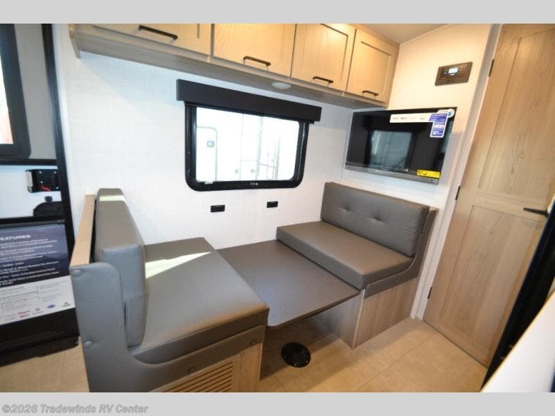 Whether you enjoy staying at the campground for a weekend or longer and/or you enjoy off-grid camping, this 20' 2" long trailer gives you lots of interior space and versatility to enjoy each and every trip. From the Murphy bed/sofa combo up front offering sleeping space and seating depending on which you prefer at the time, to the full rear bathroom which also offers overhead storage, you will have everything you need. And the kitchen cooktop, microwave and 12V refrigerator allow you to make meals and store leftovers. Two can dine at the booth dinette or you can eat outdoors under the 14' power awning.