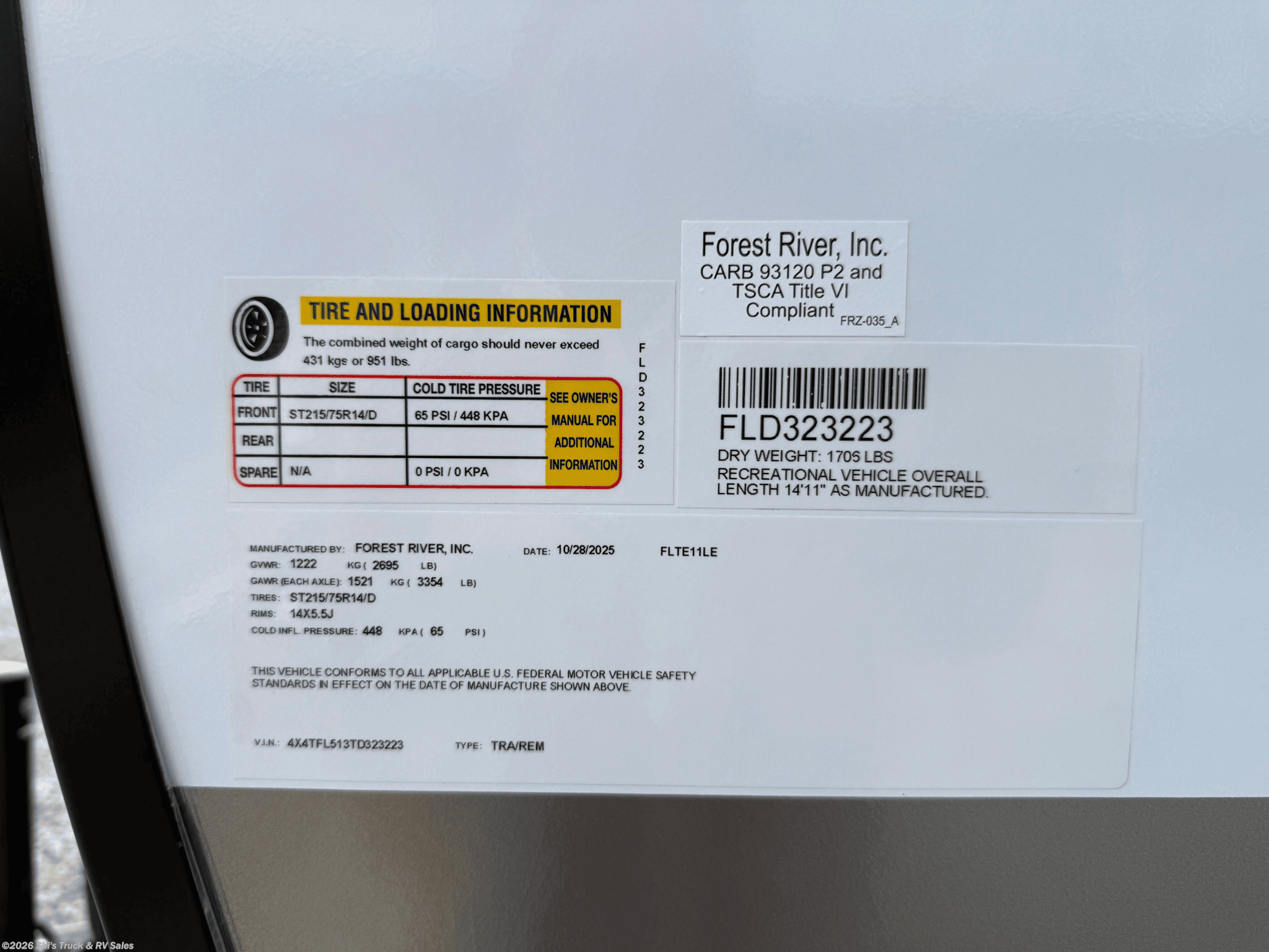 2026 Forest River Flagstaff E-Pro E11LE Specifications