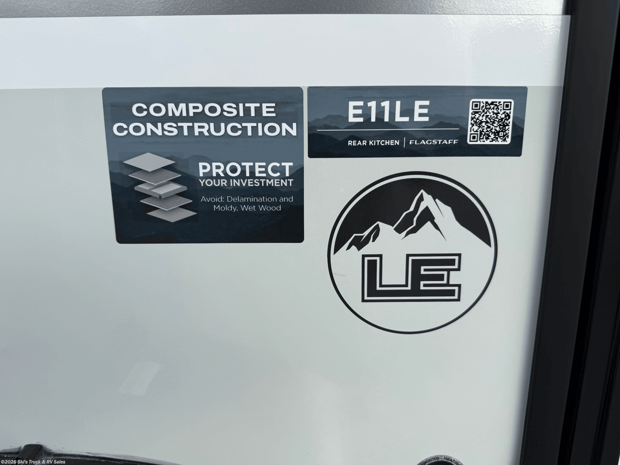 2026 Forest River Flagstaff E-Pro E11LE Lightweight Travel Trailer; 11 Foot; Sleeps 4; Hitch Weight: 210 Lbs.; Dry Weight: 1706 Lbs.; 30 Amp; Manual Tongue and Stabilizer Jacks; 18 Gal. Fresh Water Cap.; 0 Gal. Black Water Cap.; 6 Gal. Gray Water Cap.; Two 20 Lbs. Propane Tanks w/Outside Port; 8,000 BTU AC; 20,000 BTU Furnace; Outside 3.3 C.F. (110V) Refrigerator; Outside Sink; Track for Outside Grill; Small Booth Dinette; Single Bunks; 9 Foot Power Awning with LED Lights; Solar Prep.; Backup Camera Prep.; Exterior Storage; Foldup Steps; Rear Hitch; Battery Disconnect; Fiberglass Sidewalls; Tinted Windows; One Year Limited Warranty; Financing Available; Great Lightweight Travel Trailer for the Price: $12,998. Call Skis Truck & RV Sales at 765-344-1111 or visit us at for more information.