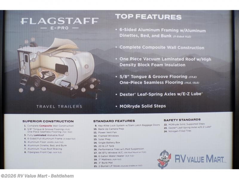 Request More Info on this 2026 Forest River Flagstaff E-Pro E17LE Offered for sale by RV Value Mart - Behtlehem