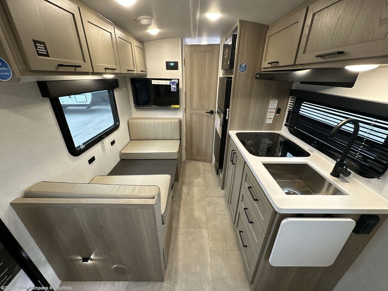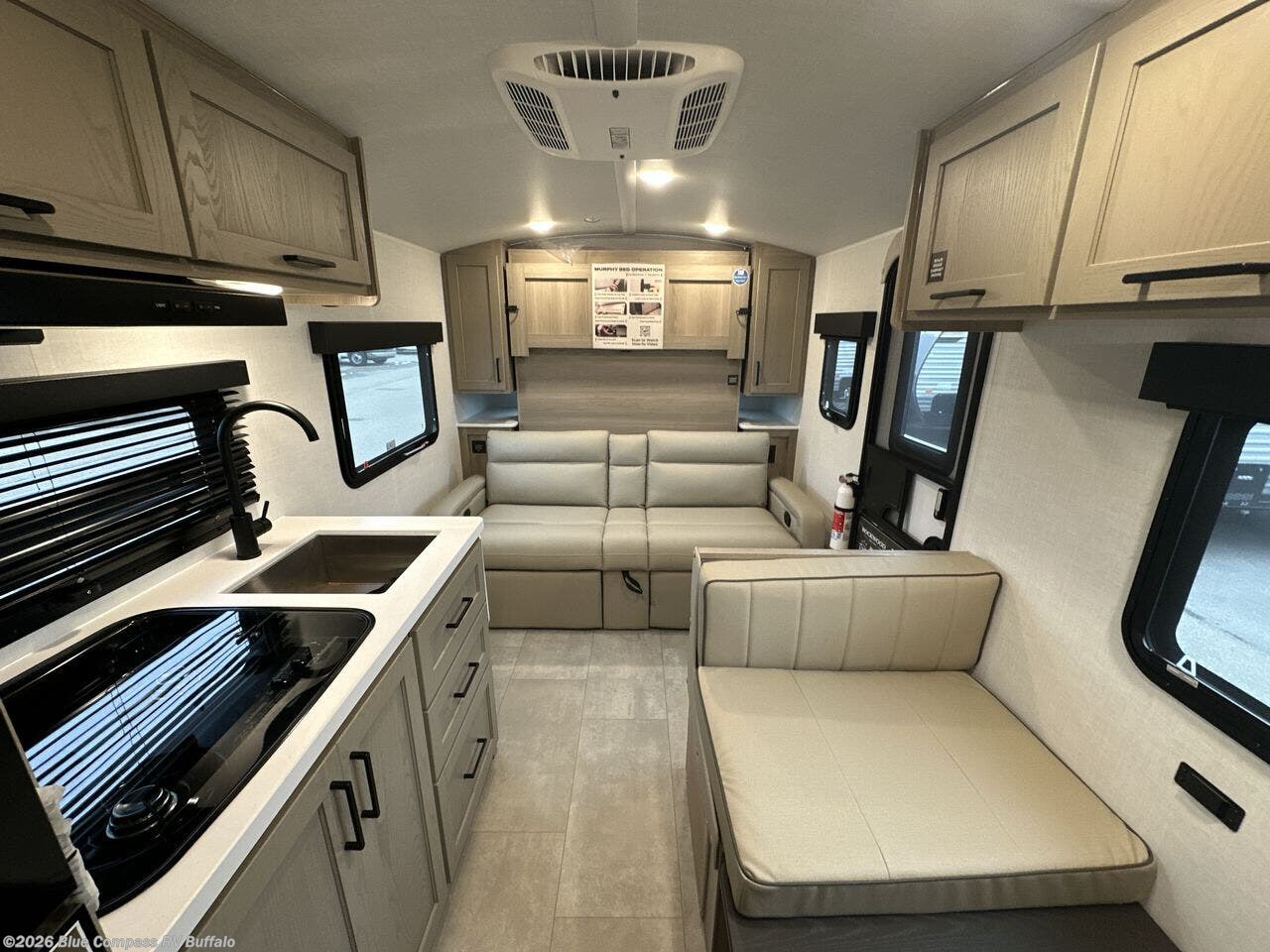 Whether you enjoy staying at the campground for a weekend or longer and/or you enjoy off-grid camping, this 20' 2" long trailer gives you lots of interior space and versatility to enjoy each and every trip. From the Murphy bed/sofa combo up front offering sleeping space and seating depending on which you prefer at the time, to the full rear bathroom which also offers overhead storage, you will have everything you need. And the kitchen cooktop, microwave and 12V refrigerator allow you to make meals and store leftovers. Two can dine at the booth dinette or you can eat outdoors under the 14' power awning.