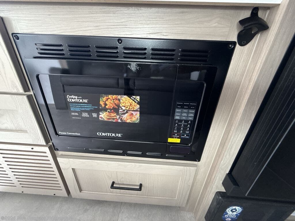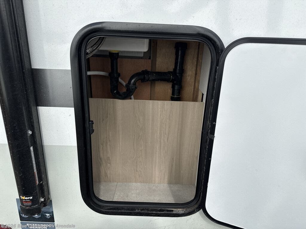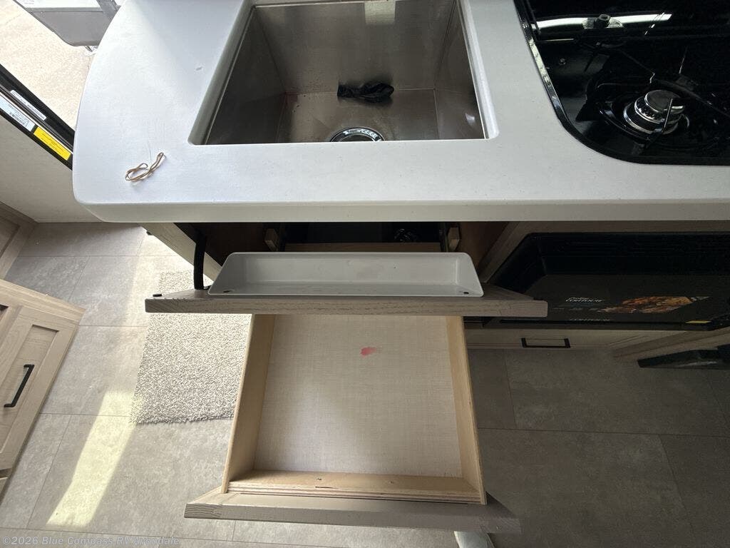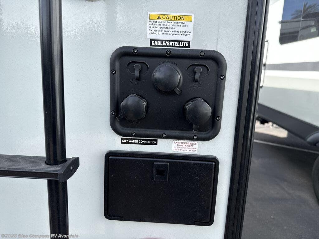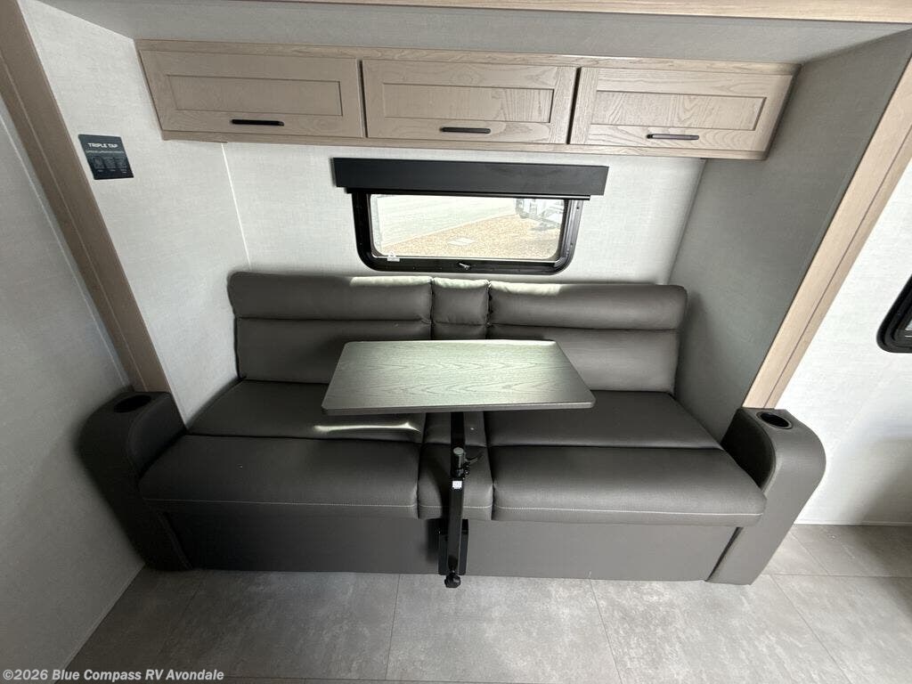 Get ready for a spacious and comfortable trip in this trailer, plus you will have a convenient rear full bathroom with an oversized shower and linen storage to utilize instead of using the campground's facilities. The walk-around full bed gives you two sides with wardrobes to claim as your own. And the kitchen offers full amenities to make meals. You can relax, dine, or even work from the slide out sofa with a 30" x 15" table and watch the TV. You will find storage along the exterior for your outdoor gear, plus a 14' power awning.