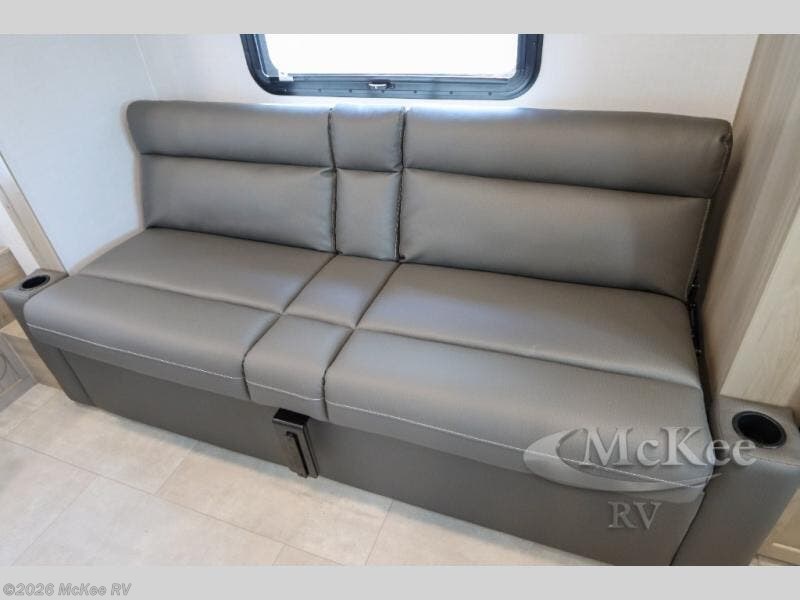 The chef will love cooking in the front kitchen of this travel trailer! It offers plenty of countertop space to meal prep and all of the essentials to cook delicious meals, plus there is even an outside kitchen with a refrigerator, a pull-out stove, and a griddle to fry what you caught that day. Enjoy all of your meals at the 72" sofa slide with a table or pull up a table and chairs under the 15' power awning. The queen bed offers a comfortable place for you to rest up each night and it even has a 26" x 80" flip-up bunk above it for a guest or two to tag along. Store all of your camping essentials in the exterior storage and rinse your feet off with the outside spray port after a fun day at the beach!