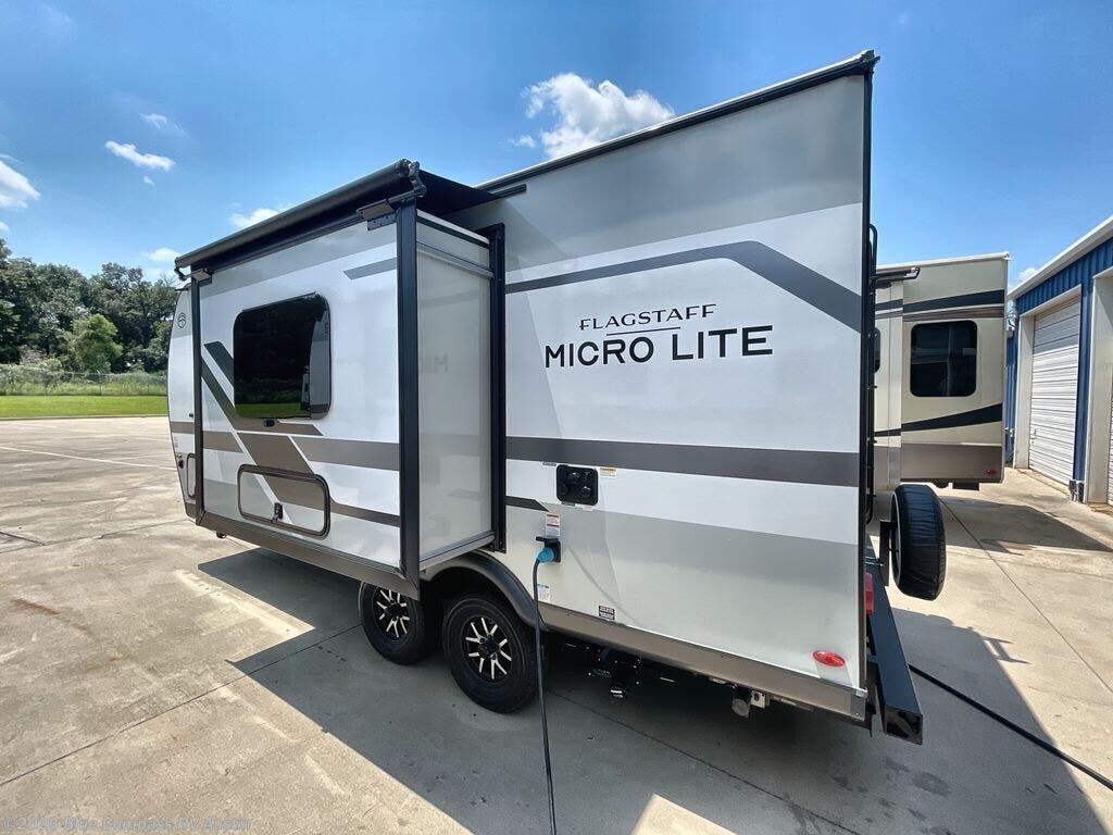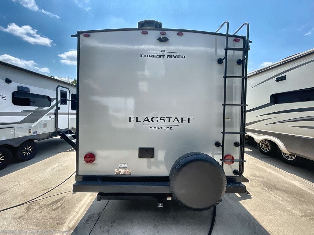 With any Flagstaff Micro Lite travel trailer by Forest River you will enjoy lightweight towing, durable construction, and added interior comforts to make each trip memorable! Each model features RoadTech tire pressure monitoring, Dexter Torflex axles, and nitrogen-filled Goodyear endurance tires for smooth towing from home to campground. The 6-sided aluminum framed construction provides a strong foundation so you can enjoy your RV for years to come, plus the radiant foil in the front cap, underbelly and slides help insulate your trailer. Additional exterior features include a 200W solar panel, back-up camera prep, frameless windows, and slam baggage doors. Each model includes the Great Expectations Package with roller shades, solid surface kitchen countertops, and hidden hinge cabinet doors. There is also an exterior hot/cold water port, outside speakers, a power tongue jack and stabilizer jacks, plus many more conveniences.