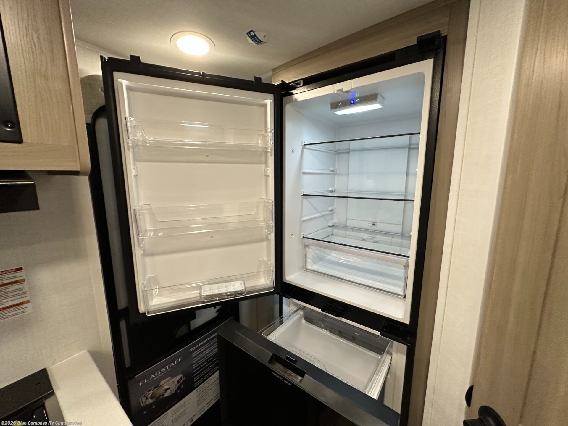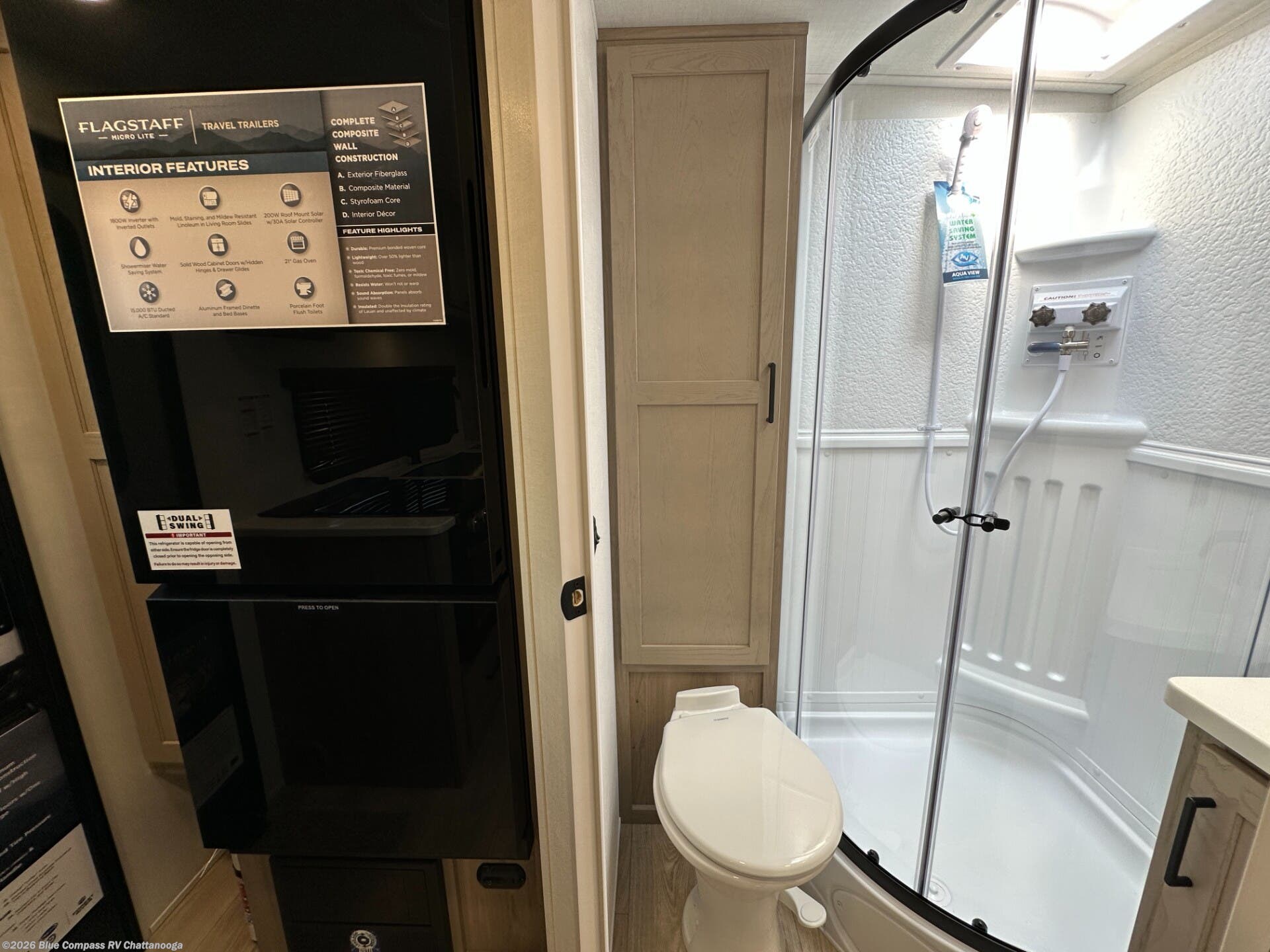 With any Flagstaff Micro Lite travel trailer by Forest River you will enjoy lightweight towing, durable construction, and added interior comforts to make each trip memorable! Each model features RoadTech tire pressure monitoring, Dexter Torflex axles, and nitrogen-filled Goodyear endurance tires for smooth towing from home to campground. The 6-sided aluminum framed construction provides a strong foundation so you can enjoy your RV for years to come, plus the radiant foil in the front cap, underbelly and slides help insulate your trailer. Additional exterior features include a 200W solar panel, back-up camera prep, frameless windows, and slam baggage doors. Each model includes the Great Expectations Package with roller shades, solid surface kitchen countertops, and hidden hinge cabinet doors. There is also an exterior hot/cold water port, outside speakers, a power tongue jack and stabilizer jacks, plus many more conveniences.