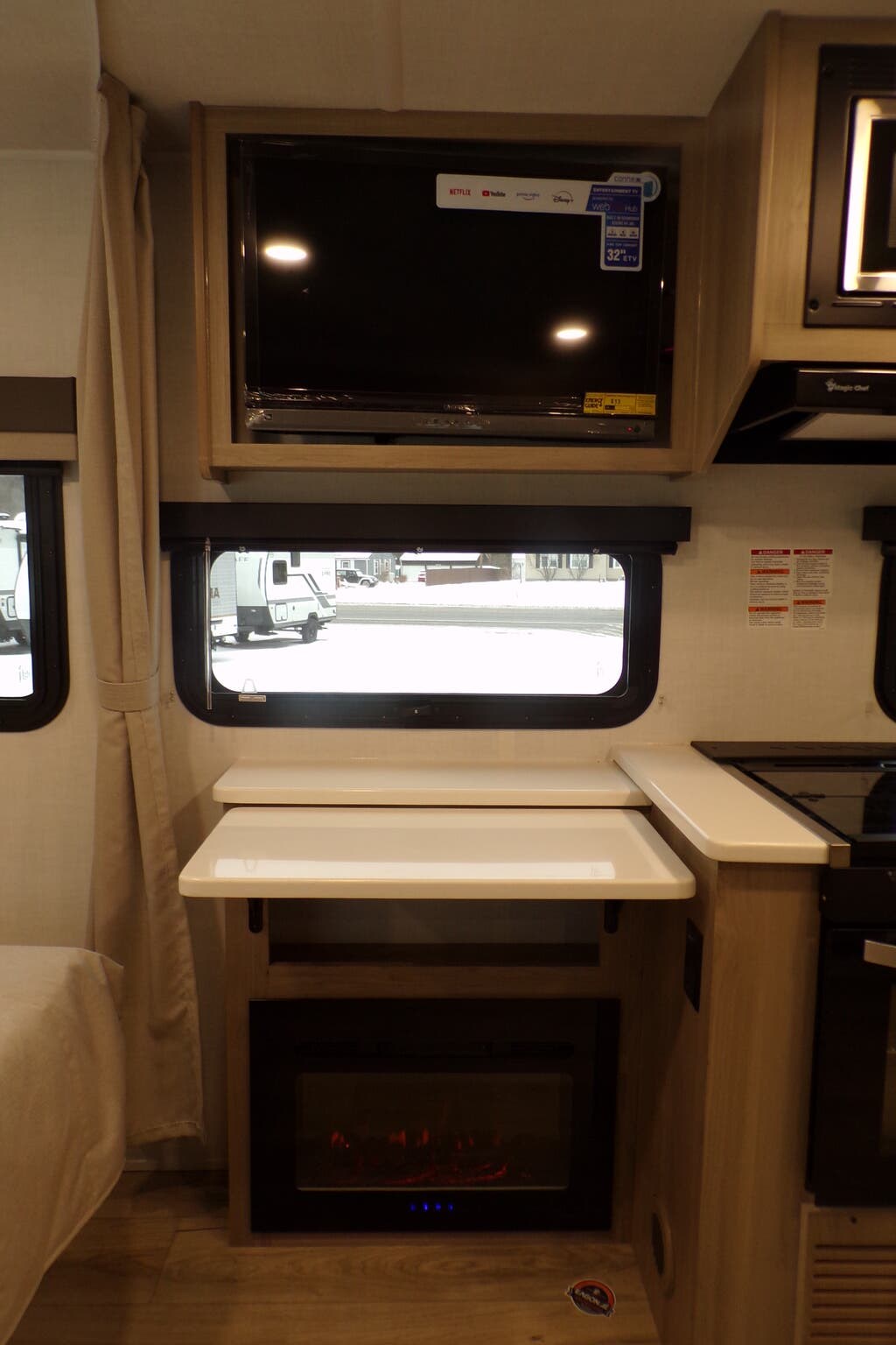 - Backup camera, TV, and fireplace for safety and cozy evenings