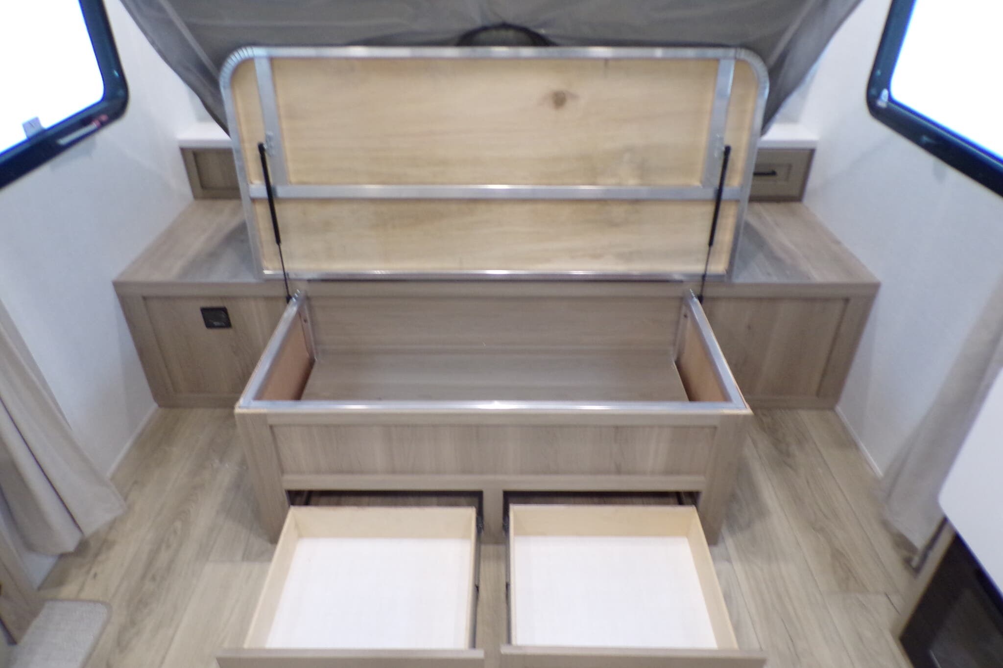 - Black tank flush, enclosed underbelly, and stabilizer jacks for easy maintenance