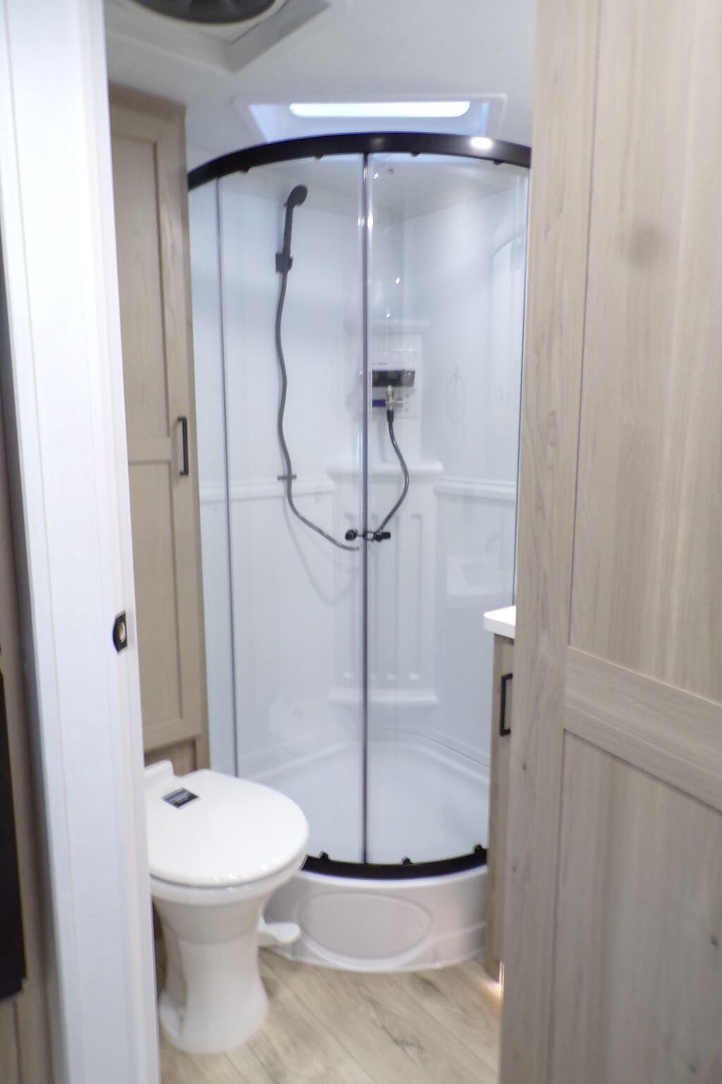 Fireplace, Glass Shower Door, Kitchen Sink, Medicine Cabinet, Overhead Cabinetry, Pantry, Queen Bed, Queen Mattress, Removable Table, Roof Vents, Shower, Solid Surface Countertops, Theater Seating, Toilet, Wardrobe(s)