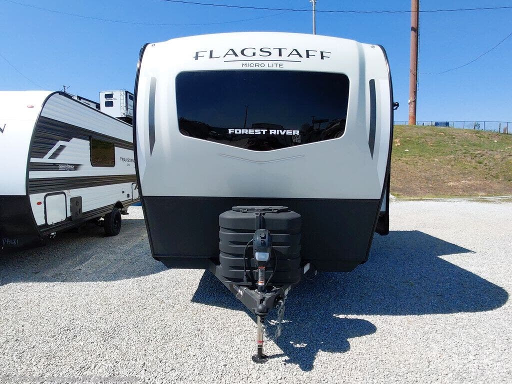 With any Flagstaff Micro Lite travel trailer by Forest River you will enjoy lightweight towing, durable construction, and added interior comforts to make each trip memorable! Each model features RoadTech tire pressure monitoring, Dexter Torflex axles, and nitrogen-filled Goodyear endurance tires for smooth towing from home to campground. The 6-sided aluminum framed construction provides a strong foundation so you can enjoy your RV for years to come, plus the radiant foil in the front cap, underbelly and slides help insulate your trailer. Additional exterior features include a 200W solar panel, back-up camera prep, frameless windows, and slam baggage doors. Each model includes the Great Expectations Package with roller shades, solid surface kitchen countertops, and hidden hinge cabinet doors. There is also an exterior hot/cold water port, outside speakers, a power tongue jack and stabilizer jacks, plus many more conveniences.