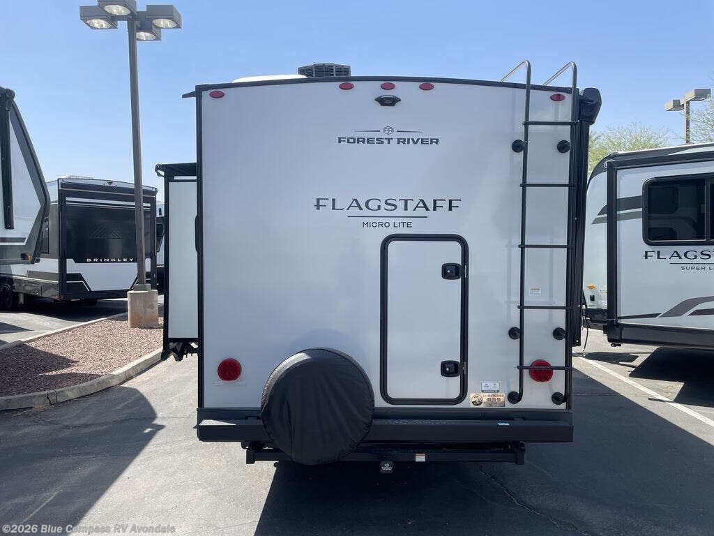 With any Flagstaff Micro Lite travel trailer by Forest River you will enjoy lightweight towing, durable construction, and added interior comforts to make each trip memorable! Each model features RoadTech tire pressure monitoring, Dexter Torflex axles, and nitrogen-filled Goodyear endurance tires for smooth towing from home to campground. The 6-sided aluminum framed construction provides a strong foundation so you can enjoy your RV for years to come, plus the radiant foil in the front cap, underbelly and slides help insulate your trailer. Additional exterior features include a 200W solar panel, back-up camera prep, frameless windows, and slam baggage doors. Each model includes the Great Expectations Package with roller shades, solid surface kitchen countertops, and hidden hinge cabinet doors. There is also an exterior hot/cold water port, outside speakers, a power tongue jack and stabilizer jacks, plus many more conveniences.