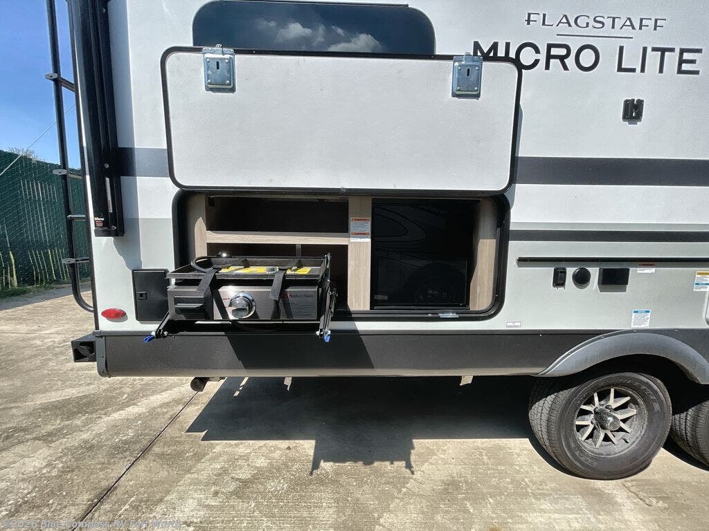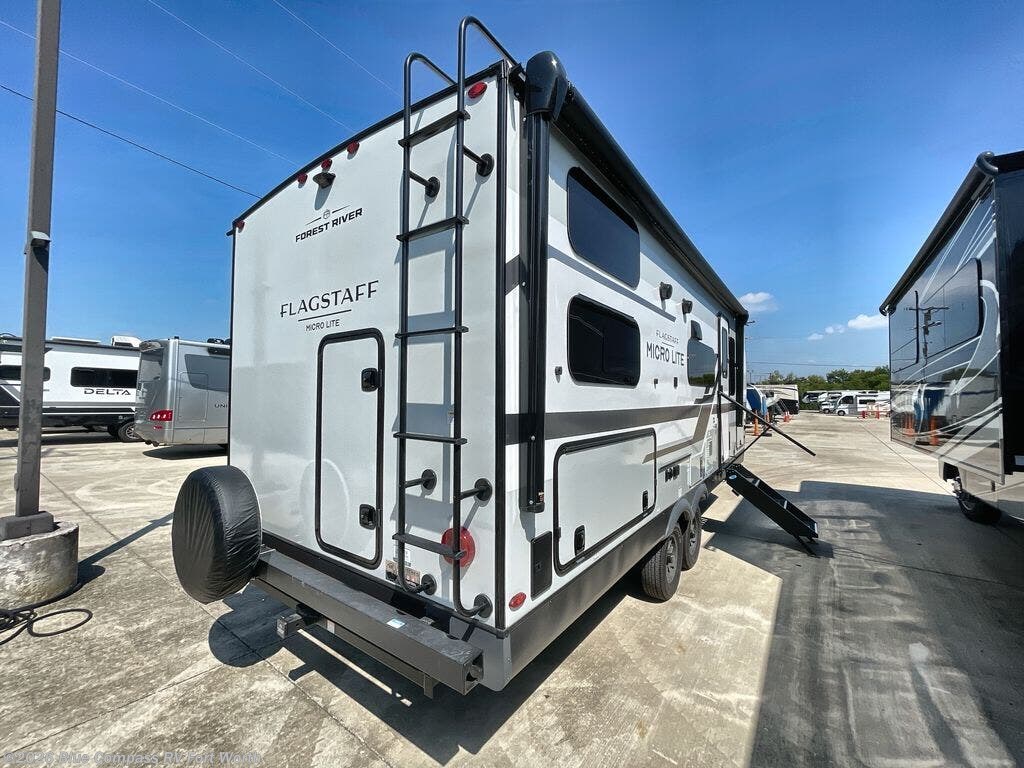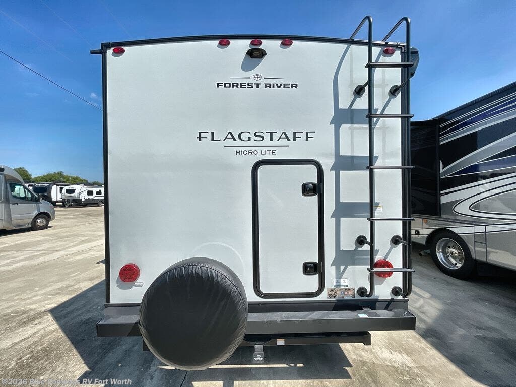 With any Flagstaff Micro Lite travel trailer by Forest River you will enjoy lightweight towing, durable construction, and added interior comforts to make each trip memorable! Each model features RoadTech tire pressure monitoring, Dexter Torflex axles, and nitrogen-filled Goodyear endurance tires for smooth towing from home to campground. The 6-sided aluminum framed construction provides a strong foundation so you can enjoy your RV for years to come, plus the radiant foil in the front cap, underbelly and slides help insulate your trailer. Additional exterior features include a 200W solar panel, back-up camera prep, frameless windows, and slam baggage doors. Each model includes the Great Expectations Package with roller shades, solid surface kitchen countertops, and hidden hinge cabinet doors. There is also an exterior hot/cold water port, outside speakers, a power tongue jack and stabilizer jacks, plus many more conveniences.