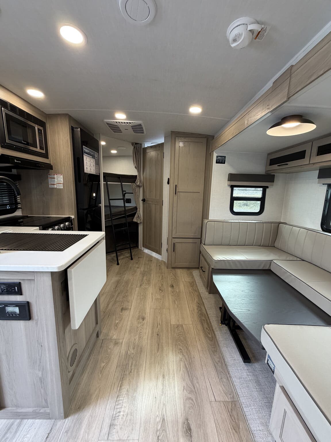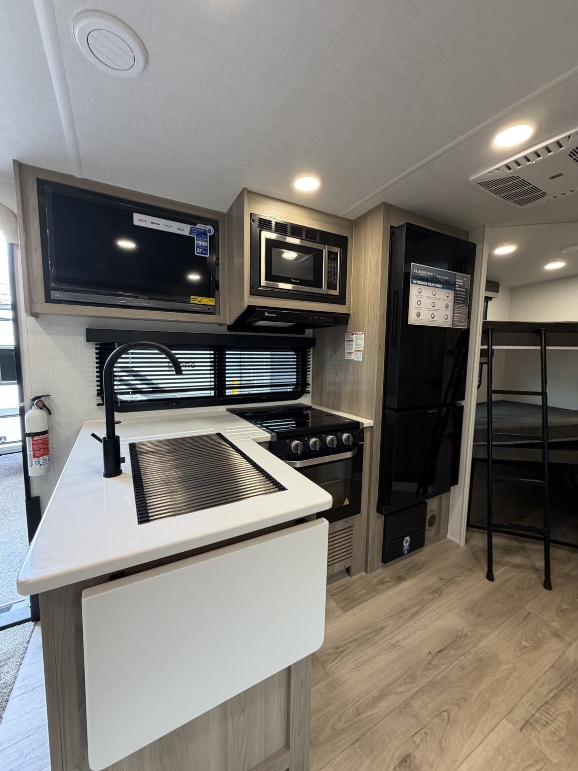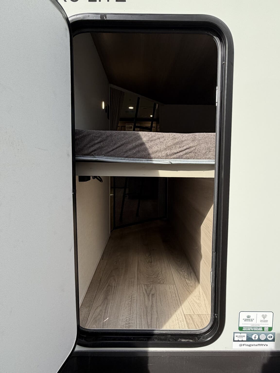 Everything you need for the perfect RV trip is packed into this 2026 Forest River Flagstaff Micro Lite 25BRDS. This 2026 Forest River Flagstaff Micro Lite 25BRDS welcomes you into the Forest River family! This rig sleeps 8, so it makes the perfect family RV. Setup is a breeze thanks to one roomy slide. Entertain or cook up a cozy meal just for you in this RV kitchen equipped with the fridge, oven. The TV make it easy to spend time together as a family. Use the dinette bed for dinner time, homeschooling or remote work days. The dinette bed makes it a perfect camper for couples. You’ll never get too hot or too cold inside your rig thanks to the heating option. Go longer without filling up thanks to the 54 gallon fresh water tanks. The exterior features make camping a breeze, such as alloy wheels, aluminum entrance steps, awning, black tank flush, detachable power cord, enclosed underbelly, external shower, fiberglass sidewalls, hitch, ladder, pass thru storage, power awning, power hitch jack, power stabilizer jacks, screen door, skylight, slam latch baggage doors, slideout, stabilizer jacks and tinted windows. Wash up from your adventures with the outside shower. Never run out of room for your belongings thanks to the pass-through storage underneath.