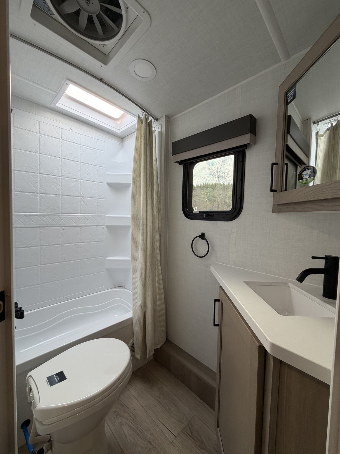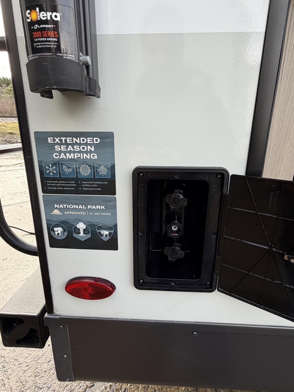 Alloy Wheels, Aluminum Entrance Steps, Awning, Black Tank Flush, Detachable Power Cord, Enclosed Underbelly, External Shower, Fiberglass Sidewalls, Hitch, Ladder, Pass Thru Storage, Power Awning, Power Hitch Jack, Power Stabilizer Jacks, Screen Door, Skylight, Slam Latch Baggage Doors, Slideout, Stabilizer Jacks, Tinted Windows -