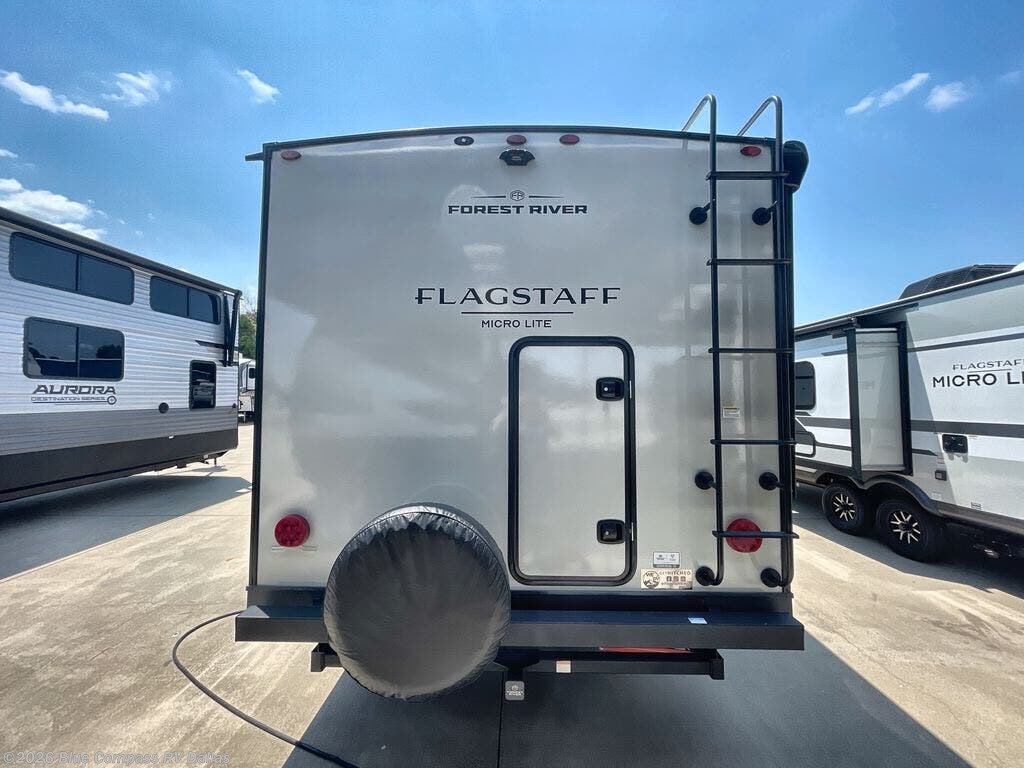 With any Flagstaff Micro Lite travel trailer by Forest River you will enjoy lightweight towing, durable construction, and added interior comforts to make each trip memorable! Each model features RoadTech tire pressure monitoring, Dexter Torflex axles, and nitrogen-filled Goodyear endurance tires for smooth towing from home to campground. The 6-sided aluminum framed construction provides a strong foundation so you can enjoy your RV for years to come, plus the radiant foil in the front cap, underbelly and slides help insulate your trailer. Additional exterior features include a 200W solar panel, back-up camera prep, frameless windows, and slam baggage doors. Each model includes the Great Expectations Package with roller shades, solid surface kitchen countertops, and hidden hinge cabinet doors. There is also an exterior hot/cold water port, outside speakers, a power tongue jack and stabilizer jacks, plus many more conveniences.