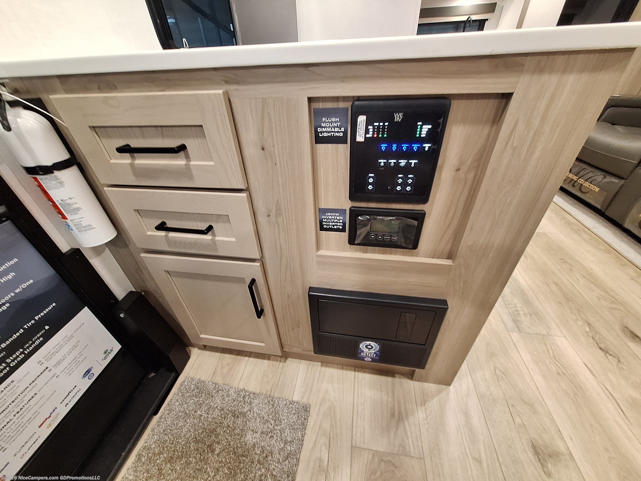 Awning, Black Tank Flush, Enclosed Underbelly, Griddle, Hitch, Ladder, Power Awning, Slam Latch Baggage Doors, Stabilizer Jacks -