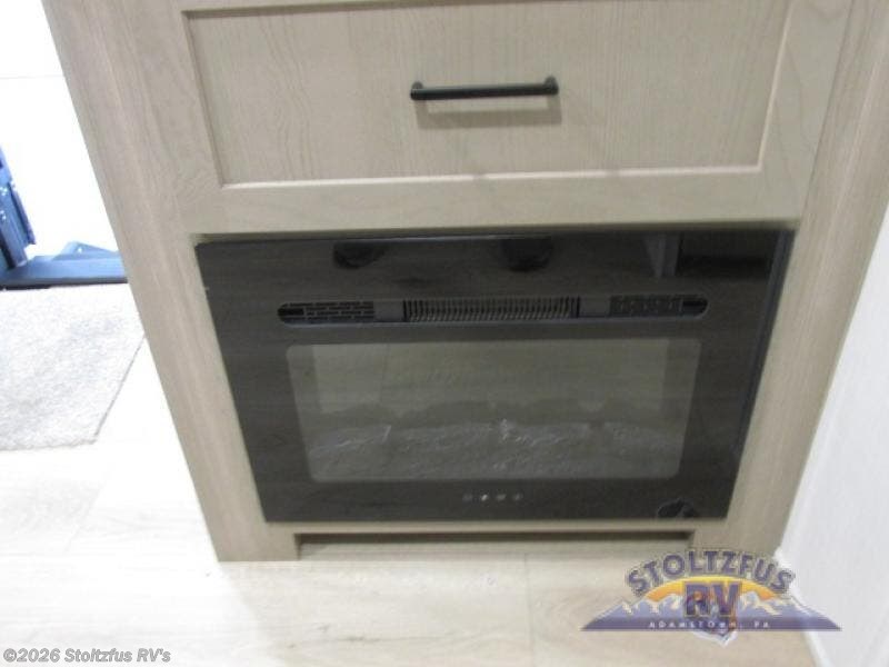 With dual entry doors and a front kitchen with generous counter space, this trailer is perfect for weekends at the campground! A U-shaped dinette slides provides more floor space inside, and it's in great view of the TV and fireplace. You'll find that the walk-thru bath is easily accessible, and the rear master bedroom will feel just like home with its RV queen bed and flip-up storage!