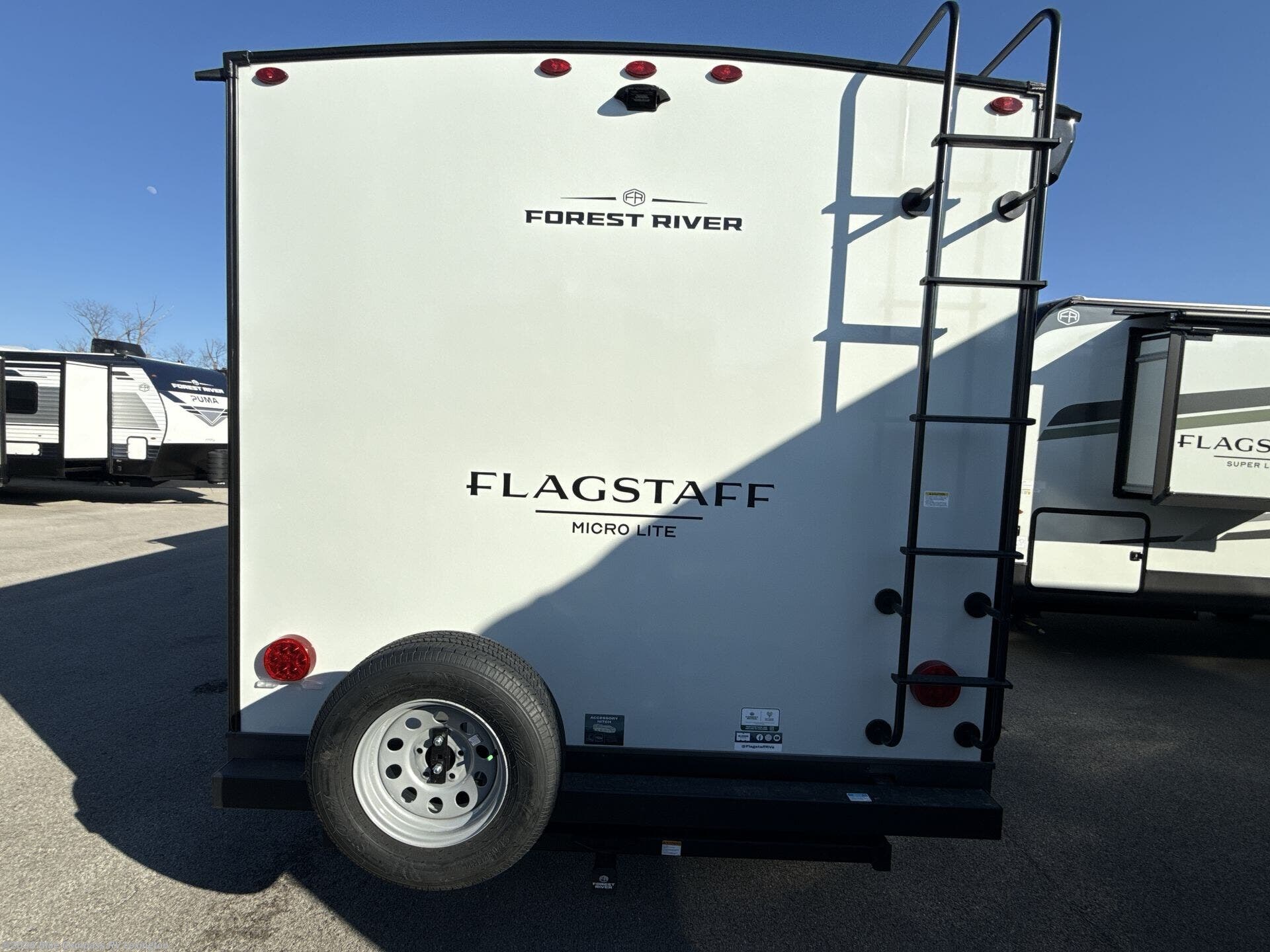 With any Flagstaff Micro Lite travel trailer by Forest River you will enjoy lightweight towing, durable construction, and added interior comforts to make each trip memorable! Each model features RoadTech tire pressure monitoring, Dexter Torflex axles, and nitrogen-filled Goodyear endurance tires for smooth towing from home to campground. The 6-sided aluminum framed construction provides a strong foundation so you can enjoy your RV for years to come, plus the radiant foil in the front cap, underbelly and slides help insulate your trailer. Additional exterior features include a 200W solar panel, back-up camera prep, frameless windows, and slam baggage doors. Each model includes the Great Expectations Package with roller shades, solid surface kitchen countertops, and hidden hinge cabinet doors. There is also an exterior hot/cold water port, outside speakers, a power tongue jack and stabilizer jacks, plus many more conveniences.