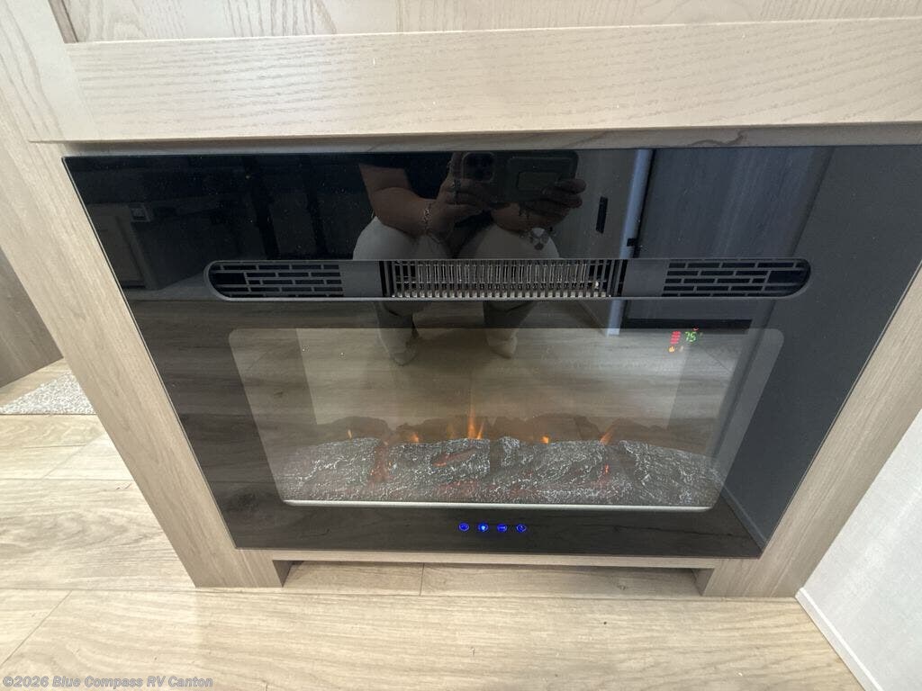 With dual entry doors and a front kitchen with generous counter space, this trailer is perfect for weekends at the campground! A U-shaped dinette slides provides more floor space inside, and it's in great view of the TV and fireplace. You'll find that the walk-thru bath is easily accessible, and the rear master bedroom will feel just like home with its RV queen bed and flip-up storage!