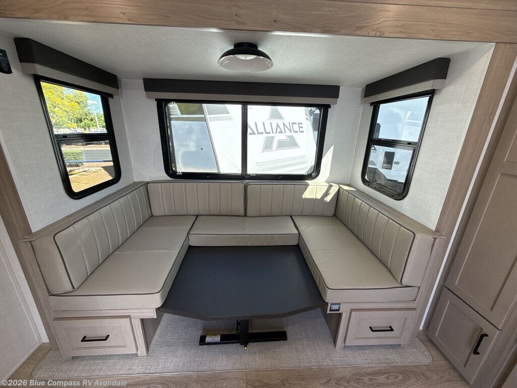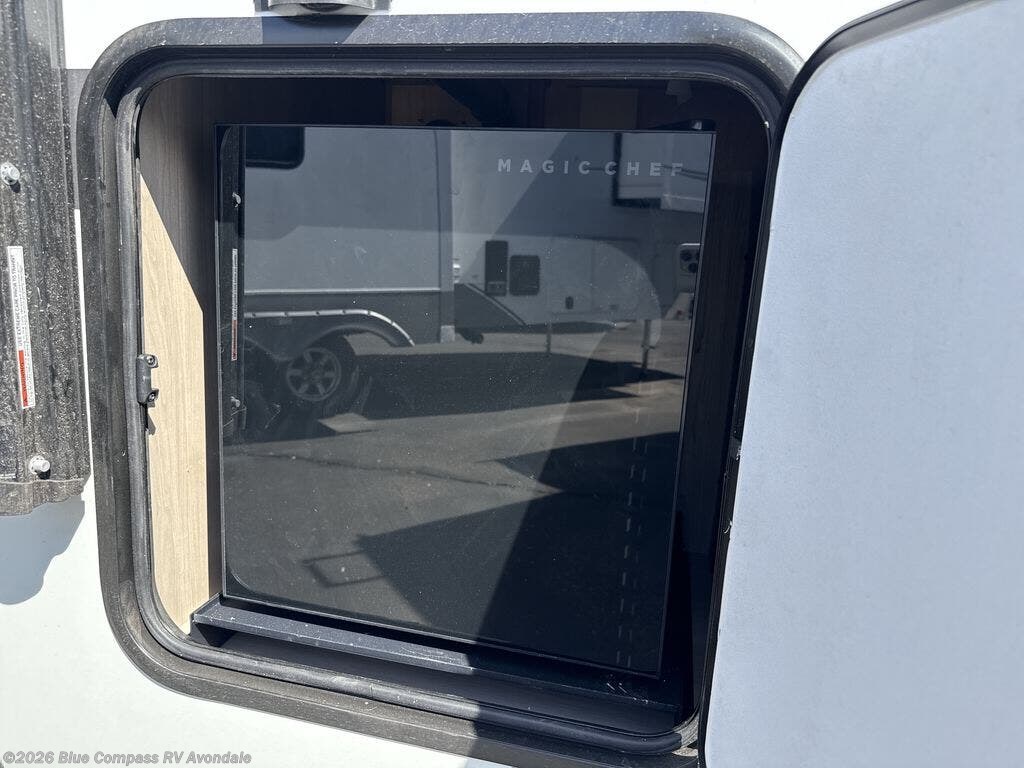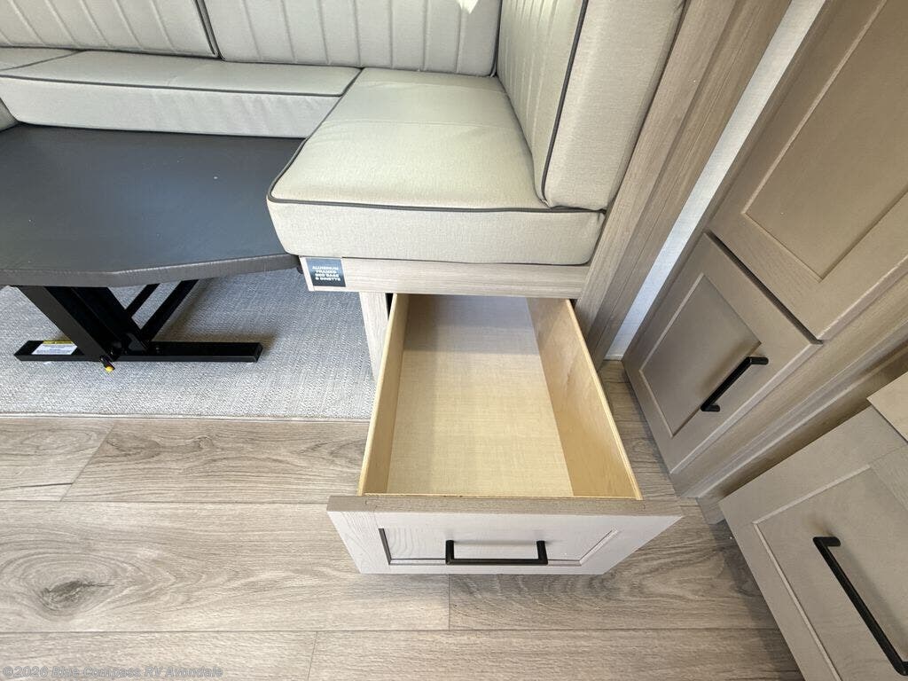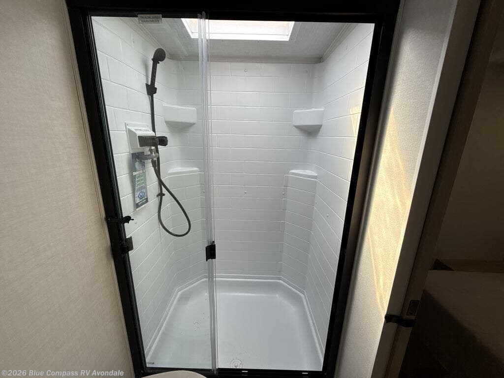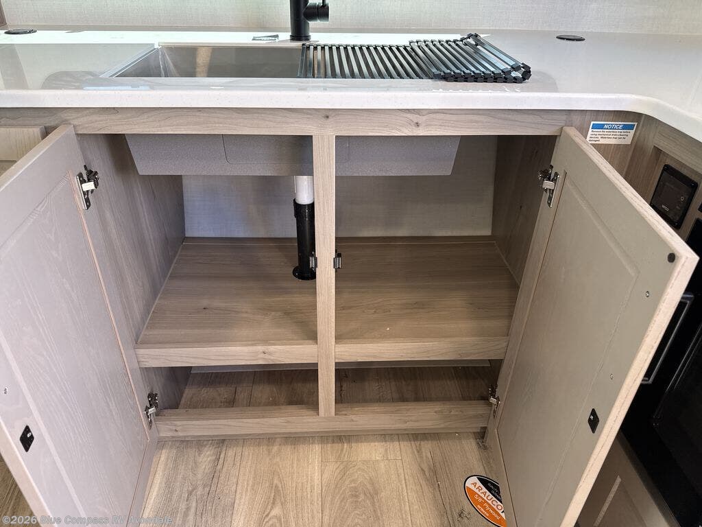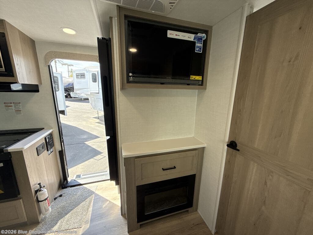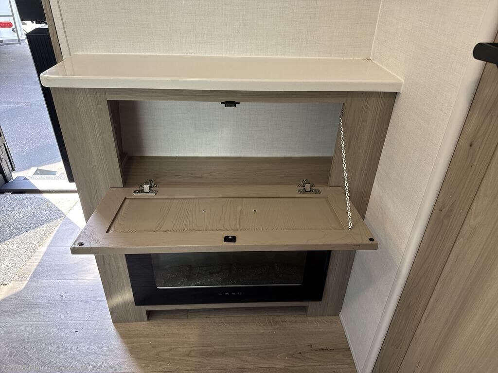 With dual entry doors and a front kitchen with generous counter space, this trailer is perfect for weekends at the campground! A U-shaped dinette slides provides more floor space inside, and it's in great view of the TV and fireplace. You'll find that the walk-thru bath is easily accessible, and the rear master bedroom will feel just like home with its RV queen bed and flip-up storage!