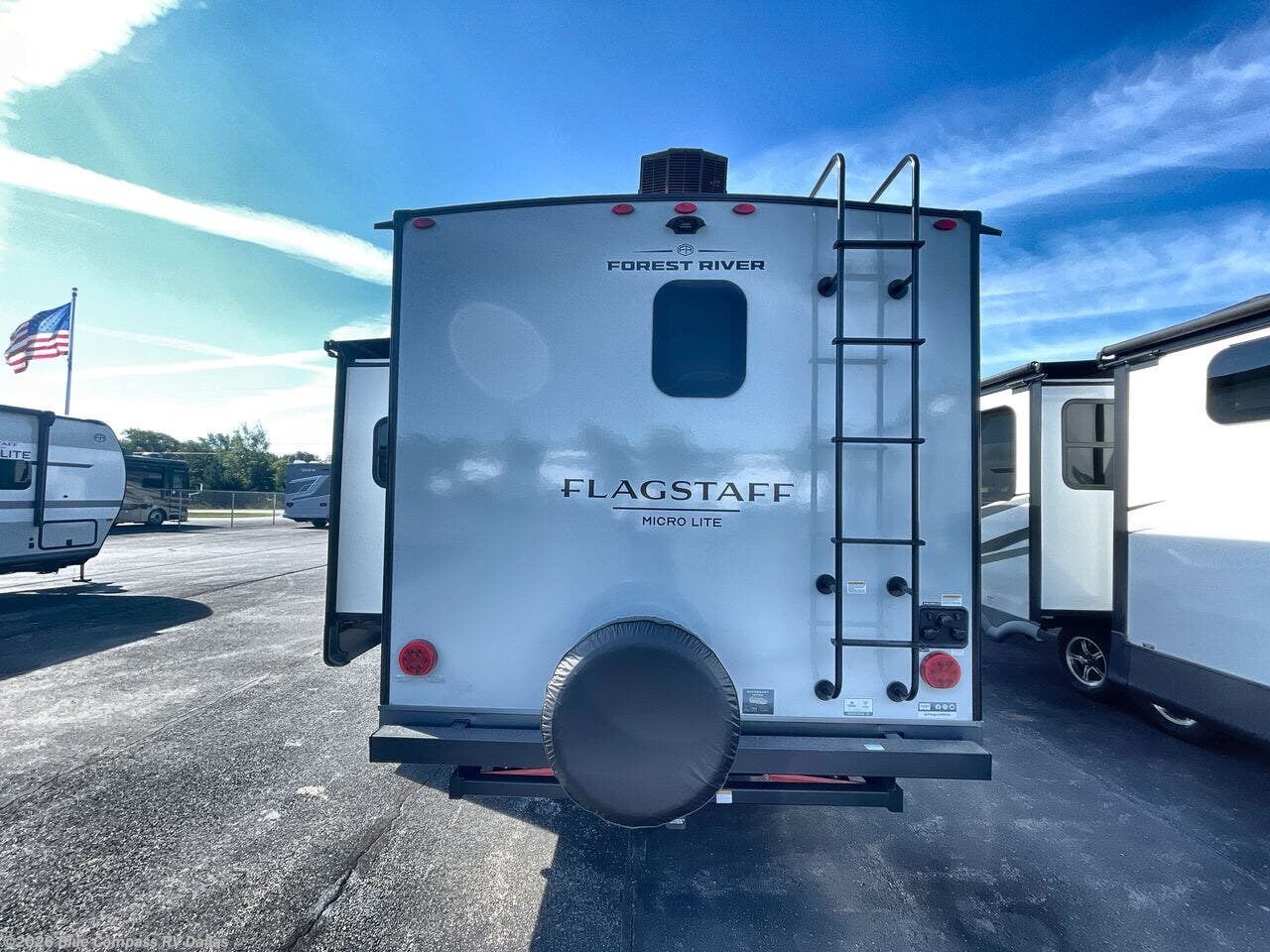 With any Flagstaff Micro Lite travel trailer by Forest River you will enjoy lightweight towing, durable construction, and added interior comforts to make each trip memorable! Each model features RoadTech tire pressure monitoring, Dexter Torflex axles, and nitrogen-filled Goodyear endurance tires for smooth towing from home to campground. The 6-sided aluminum framed construction provides a strong foundation so you can enjoy your RV for years to come, plus the radiant foil in the front cap, underbelly and slides help insulate your trailer. Additional exterior features include a 200W solar panel, back-up camera prep, frameless windows, and slam baggage doors. Each model includes the Great Expectations Package with roller shades, solid surface kitchen countertops, and hidden hinge cabinet doors. There is also an exterior hot/cold water port, outside speakers, a power tongue jack and stabilizer jacks, plus many more conveniences.