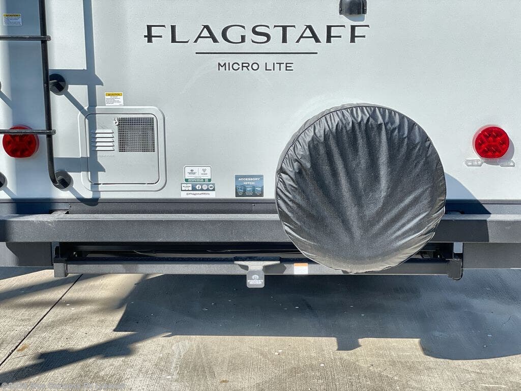 With any Flagstaff Micro Lite travel trailer by Forest River you will enjoy lightweight towing, durable construction, and added interior comforts to make each trip memorable! Each model features RoadTech tire pressure monitoring, Dexter Torflex axles, and nitrogen-filled Goodyear endurance tires for smooth towing from home to campground. The 6-sided aluminum framed construction provides a strong foundation so you can enjoy your RV for years to come, plus the radiant foil in the front cap, underbelly and slides help insulate your trailer. Additional exterior features include a 200W solar panel, back-up camera prep, frameless windows, and slam baggage doors. Each model includes the Great Expectations Package with roller shades, solid surface kitchen countertops, and hidden hinge cabinet doors. There is also an exterior hot/cold water port, outside speakers, a power tongue jack and stabilizer jacks, plus many more conveniences.