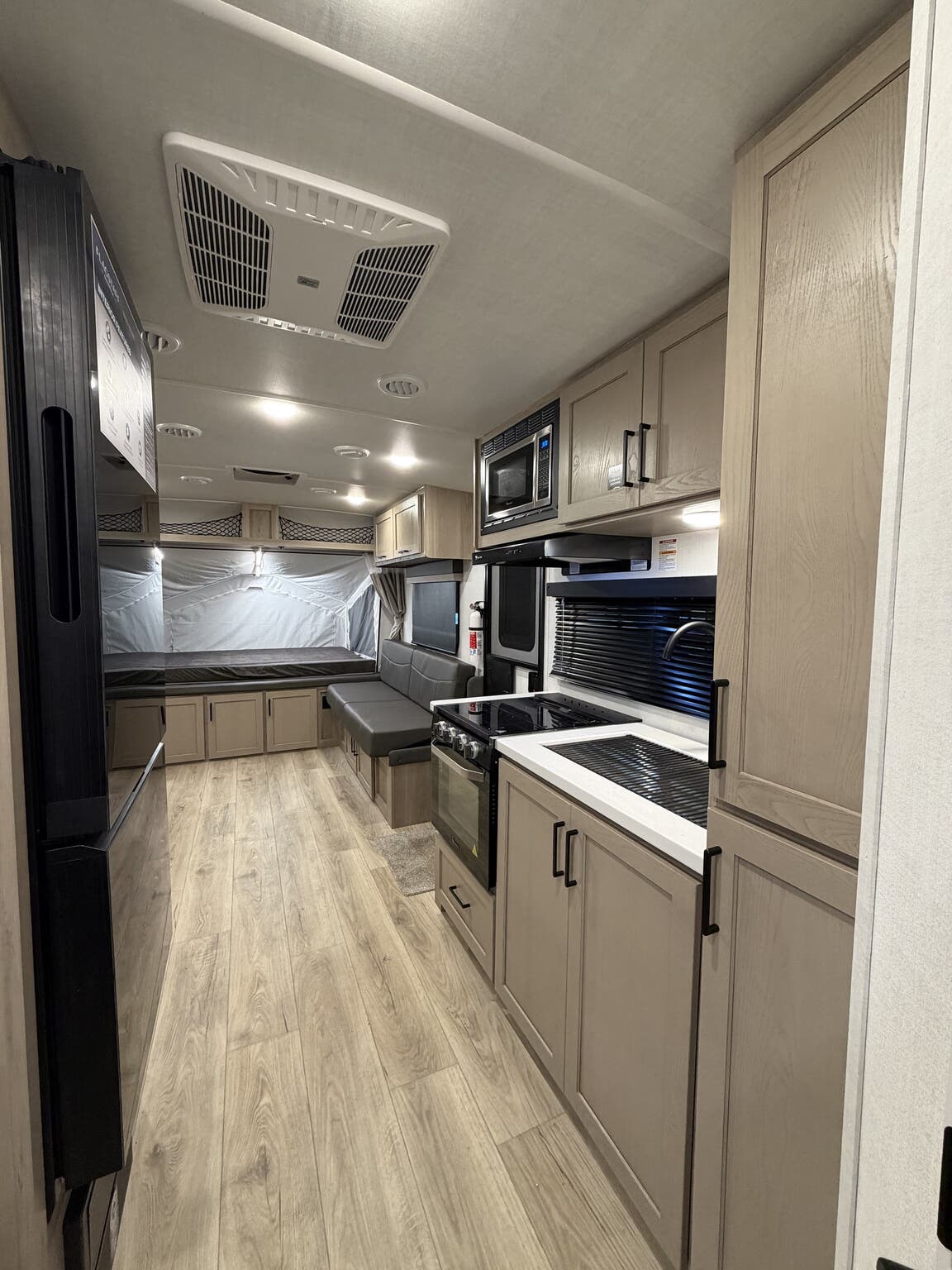 This expandable travel trailer is ideal for families seeking a reliable, easy-to-tow option with modern conveniences. The 233S delivers practical storage, comfortable climate control, and entertainment options that make every trip feel like a home away from home. Its solar readiness helps extend camping off the grid, and the enclosed underbelly along with stabilizer jacks provide stability across terrains. With a thoughtful layout and a roomy interior, this RV is well-suited for weekend escapes, seasonal trips, and everything in between.
