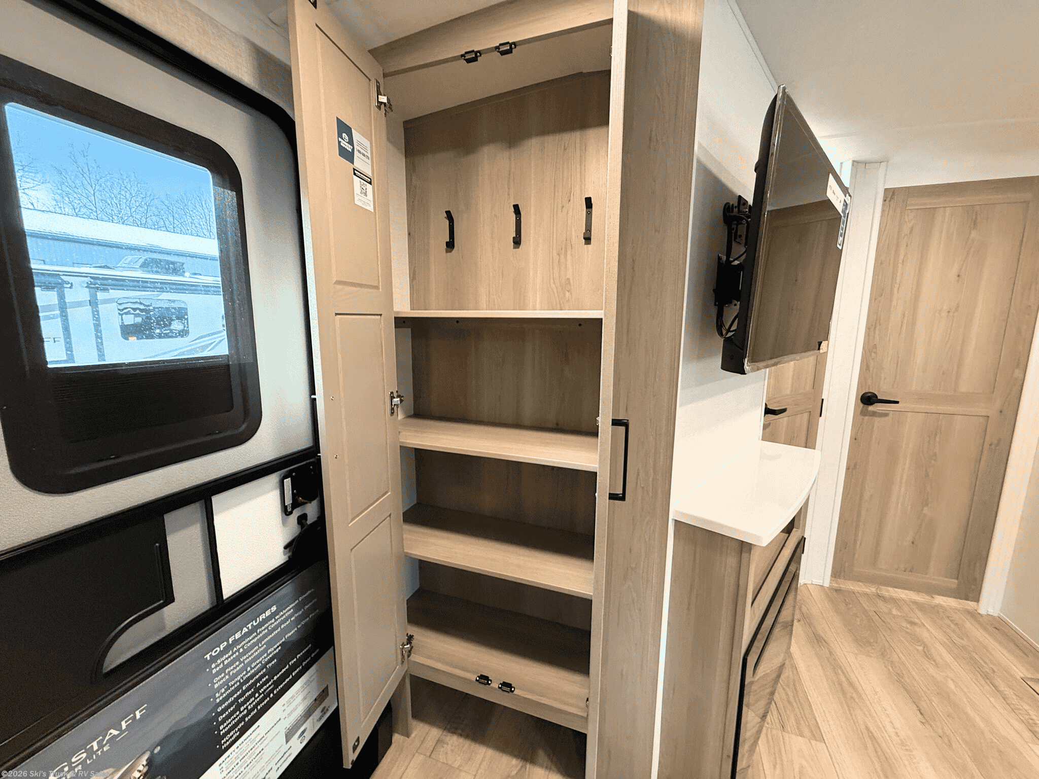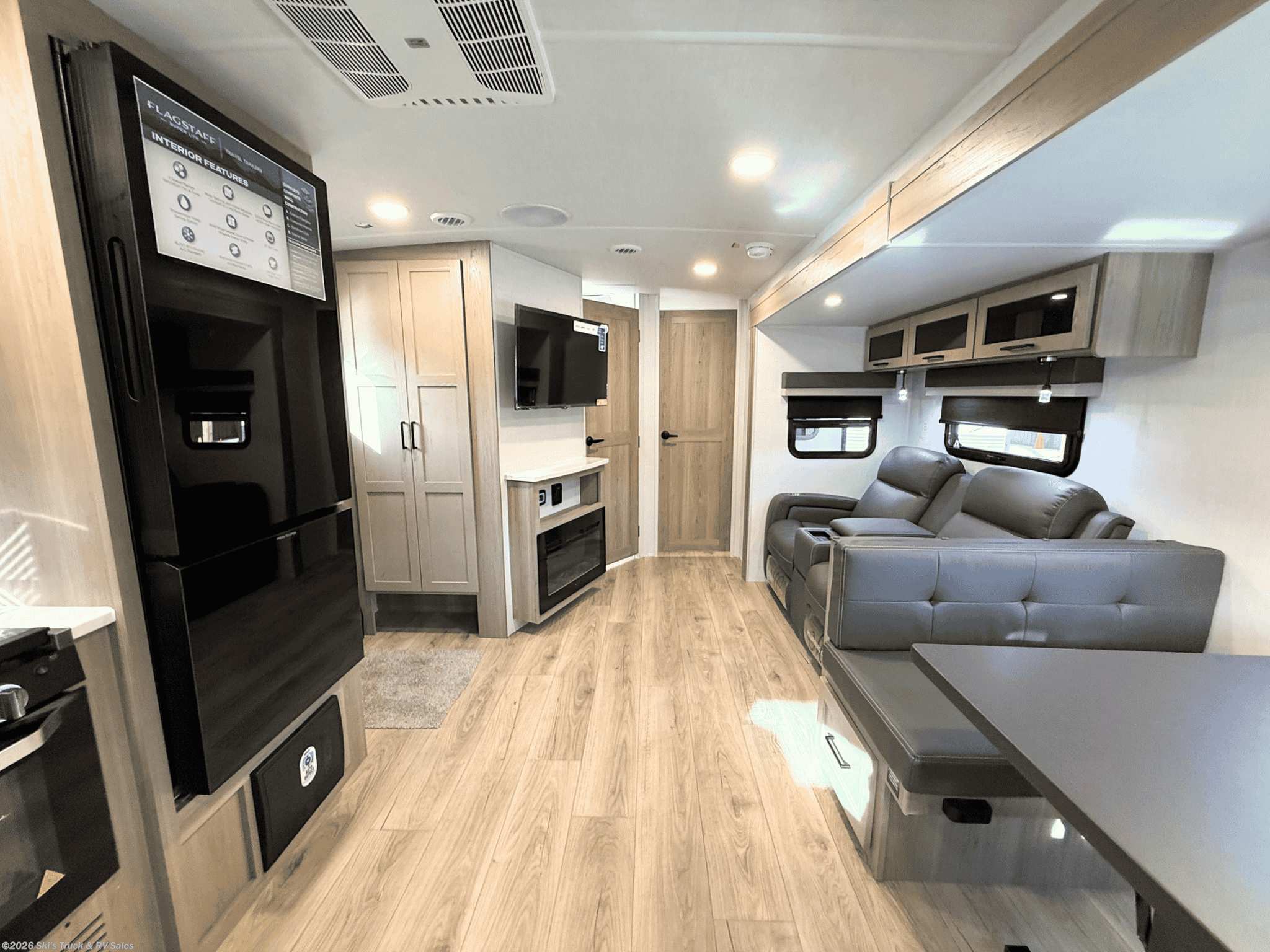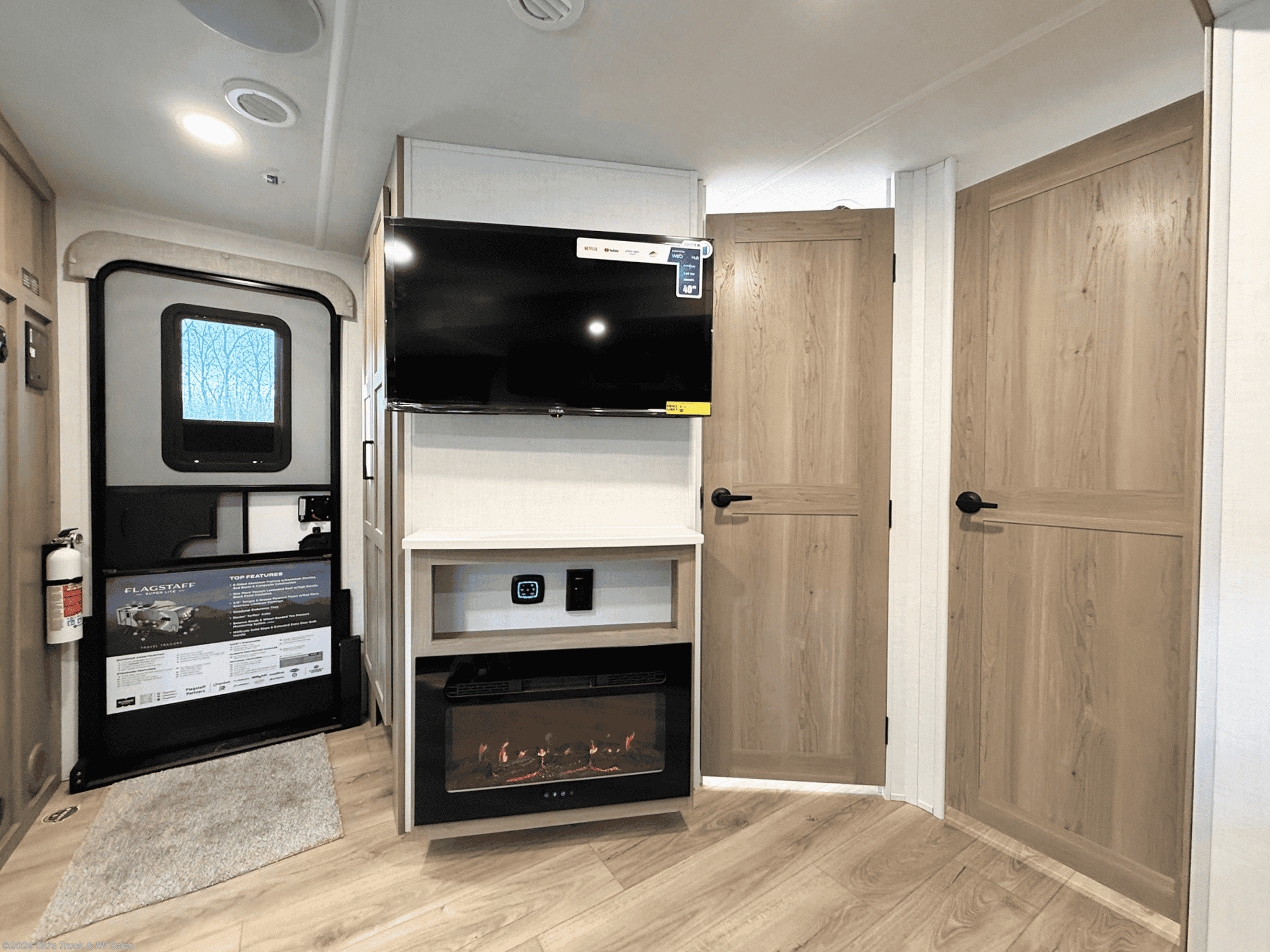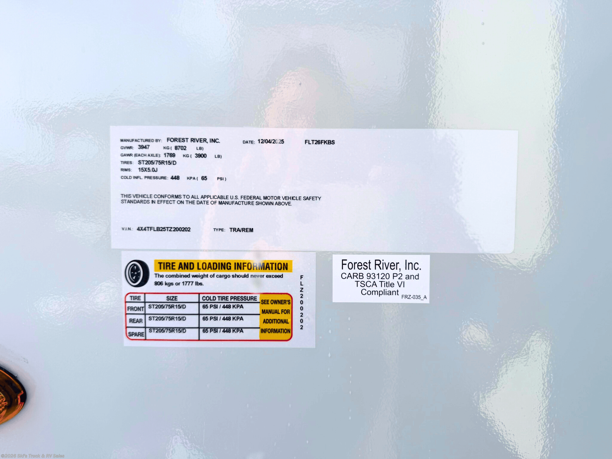 2026 Forest River Flagstaff Super Lite 26FKBS Travel Trailer with Platinum Package; 26 Foot; 2 Slides; Sleeps 3-4; Hitch Weight: 902 Lbs.; Dry Weight: 6,887 Lbs.; 50 Amp; Auto Leveling; 54 Gal. Fresh Water Cap.; 45 Gal. Black Water Cap.; 90 Gal. Gray Water Cap.; Two 30 Lbs. Propane Tanks w/Outside Port; Two ACs: 15,000 / 15,000 BTUs; 35,000 BTU Furnace; 10 C.F. (12V) Refrigerator; 6 Gal. Gas/Elec. Water Heater with Quick Recovery; Microwave; 3-Burner Stove/Oven; Solid Surface Countertops; Two TV Jacks; 40 In. TV; Speakers; One Fireplace; Booth Dinette; Pantry; Stainless Steel Sink; Theater Seats; Queen Bed; Large Wardrobe; One Bathroom with Shower; Porcelain Toilet; 21 Foot Power Awning with LED Lights; Solar (200W) Package with 1800W Inverter; Backup Camera Prep.; Dual Entry Doors; Outside Shower; Exterior Storage; Foldup Steps; Grab Handle; Roof Ladder; Rear Hitch; Key Alike System; Magnetic Door Holders; Battery Disconnect; Black Tank Flush; Climate Package; Heated Tanks; Fiberglass Sidewalls; Frameless Tinted Windows; Roller Shades; Goodyear Tires; Aluminum Wheels; Spare Tire; One Year Limited Warranty; Financing Available; Super Travel Trailer for the Price: $42,995. Call Skis Truck & RV Sales at 765-344-1111 or visit us at for more information.