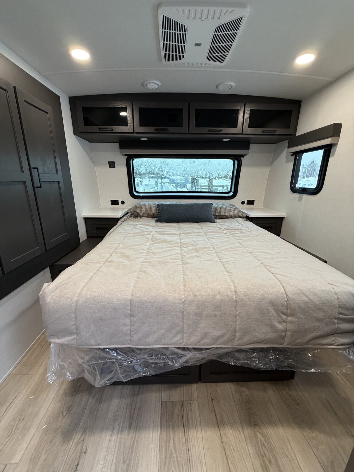 Beautiful special order unit! Platinum package, auto level, frameless windows, power inverter, 2 a/c units, slide topper awnings, smart TVs, 2 solar panels, Mojave Furniture, Andover Sable wood!! Must see!! Contact us for best price!!