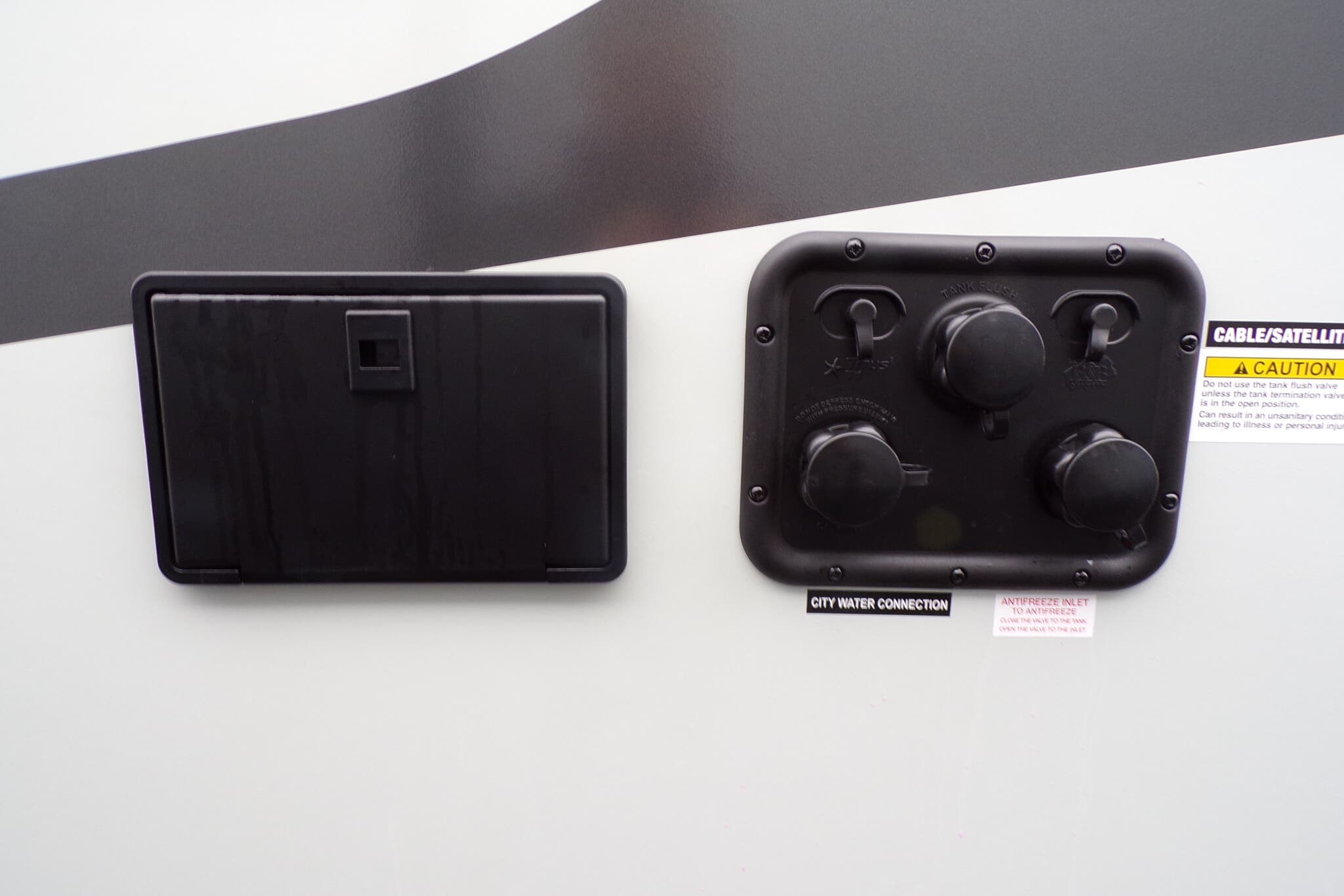 Cable Prepped, CO Detector, Fire Extinguisher, LED Lights, Load Lights, LP Detector, Propane, Satellite Prepped, Smart TV, Smoke Detector, TV, TV Antenna -