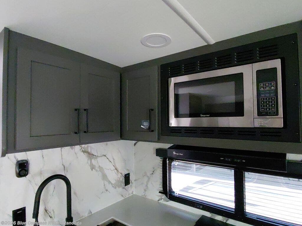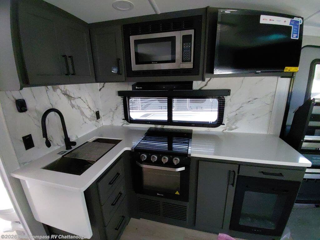 It will be so easy to enjoy time at the campground in this cozy travel trailer. The full kitchen includes a three burner gas oven, a microwave oven, and a 12V refrigerator to cook and store food, and the pantry will let you stock up on snacks. Your crew can get comfortable on the theater seat or around the rear U-shaped dinette, and there is a smart TV here to make it a movie night. The walk-thru bath will let you freshen up each day, and the queen bed in the front bedroom is sure to bring comfort. You will also find one of the dual entry doors here for convenience plus a wardrobe slide out for more storage and floor space. The exterior is just as accommodating with its pass-thru storage, 2" receiver hitch, and 21' power awning!